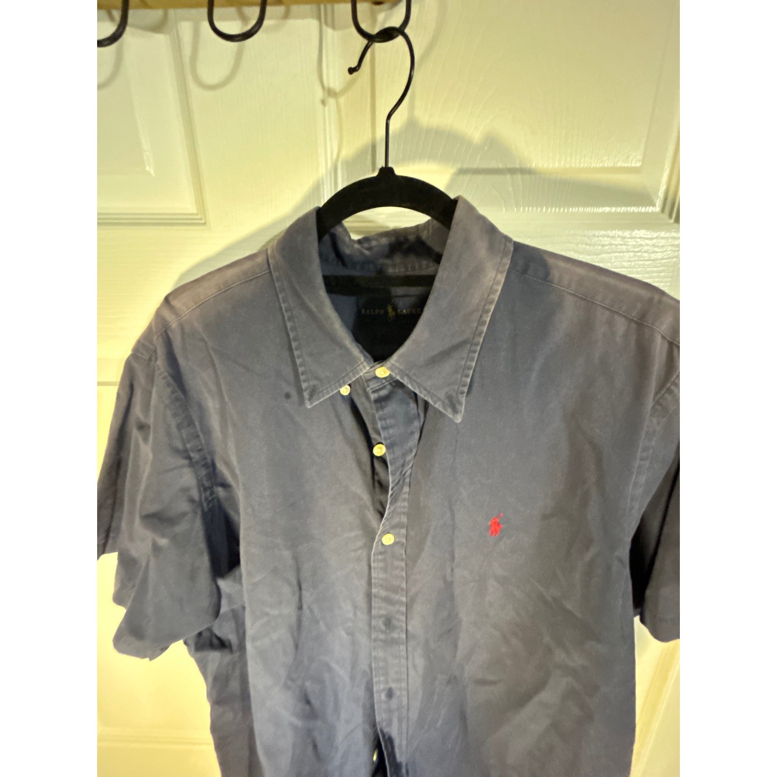 как выглядит Ralph Lauren Mens Short Sleeve Button Up Shirt Blue Polo Pony Logo Size XL TG фото
