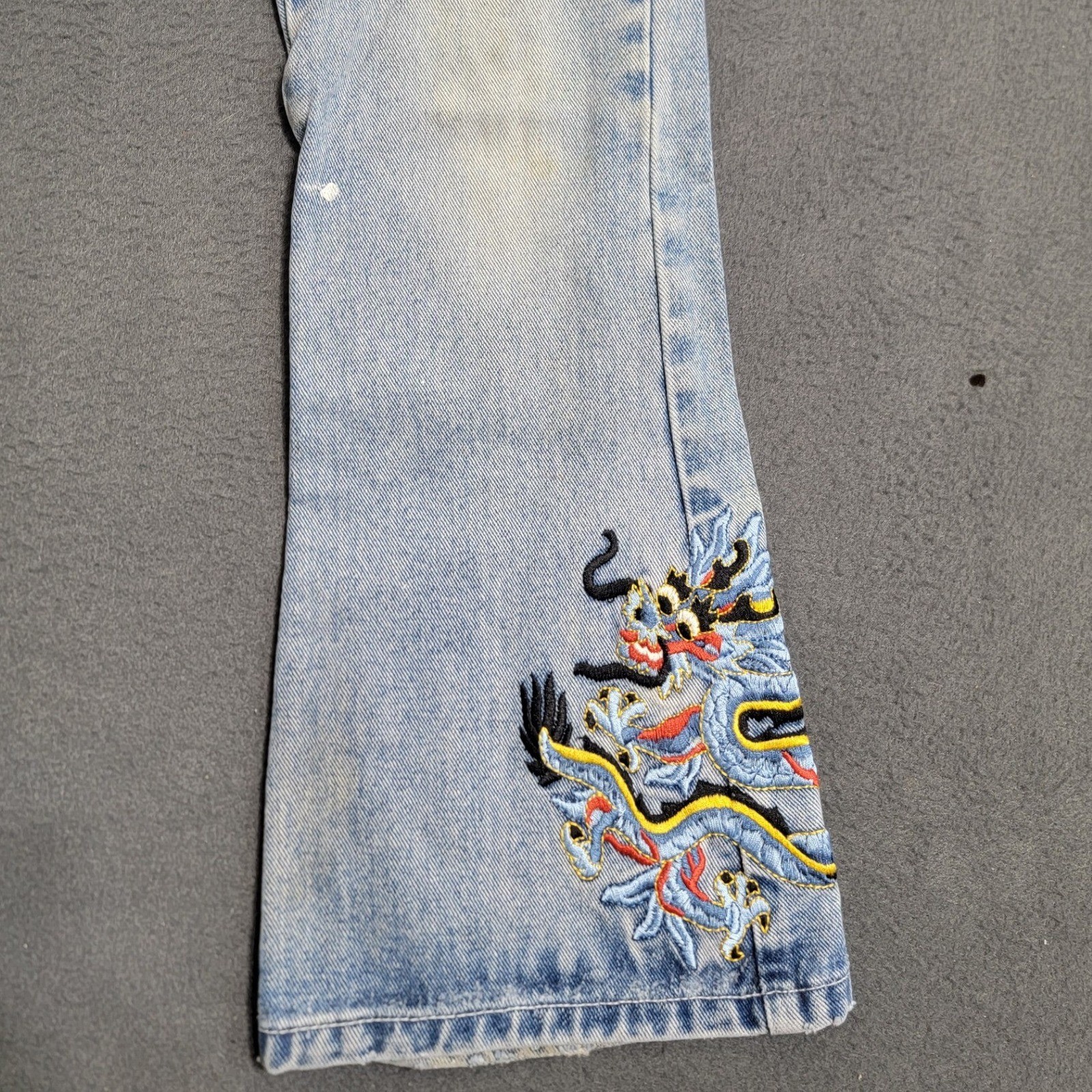 Vintage Limited Too Dragon Embroidered Jeans Light Wash Flare Y2K Girls Size 12