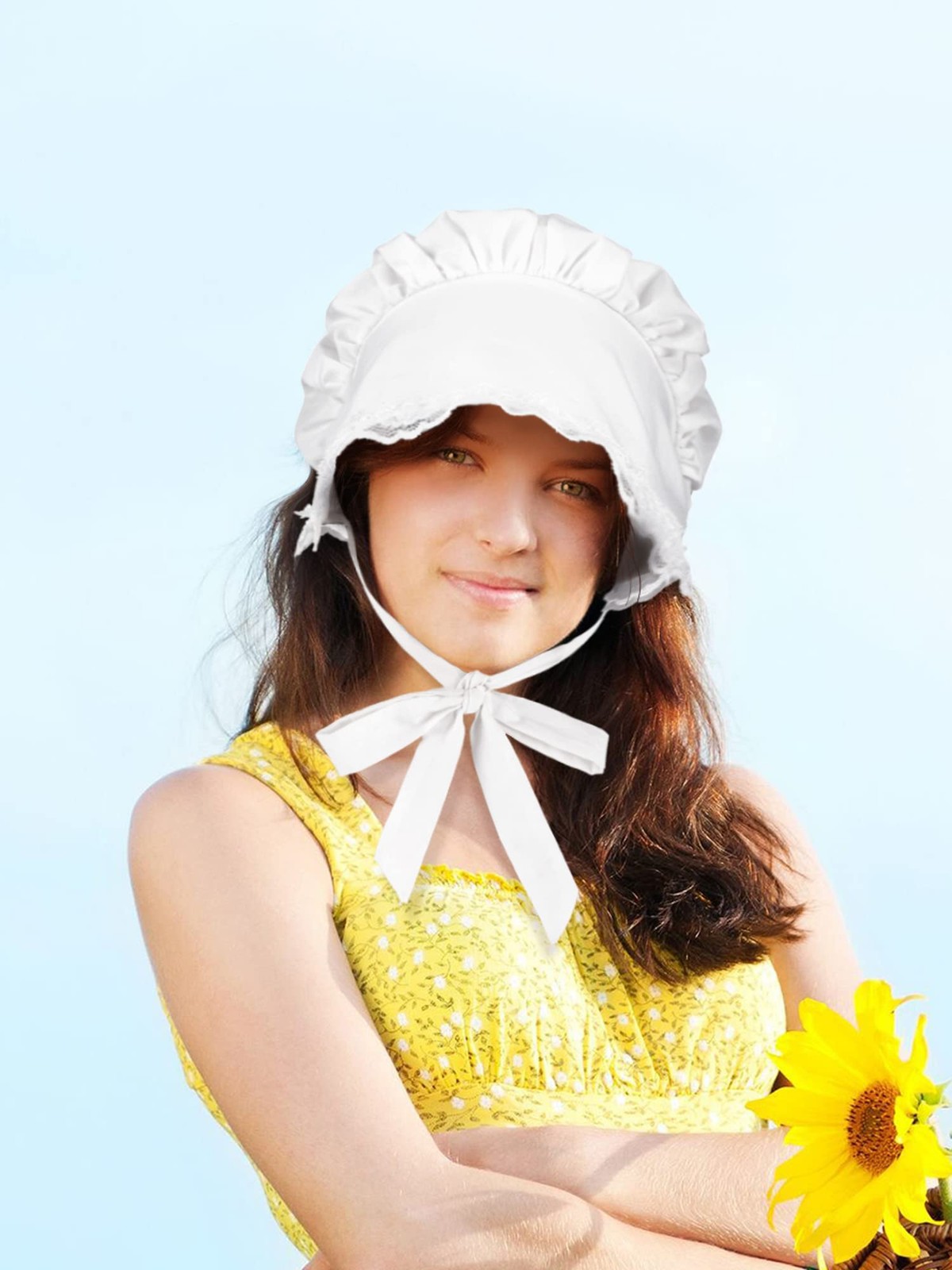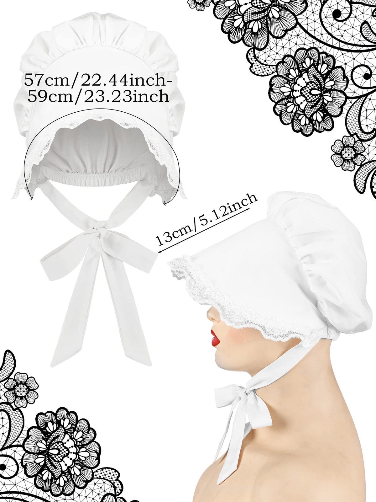 3 Pieces Women's Bonnet Colonial Hat Mob Bonnets White One Size,