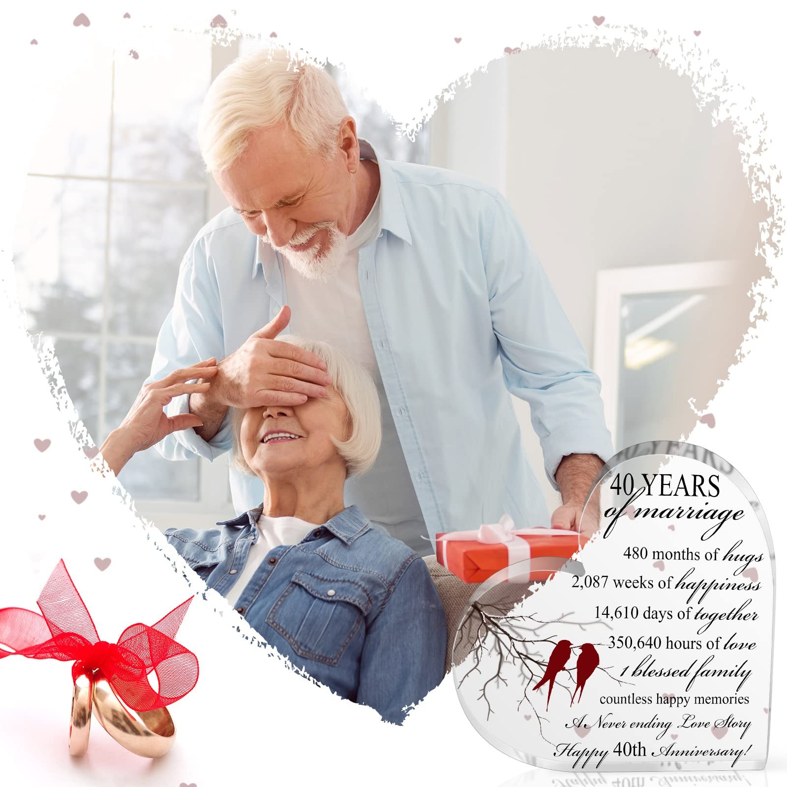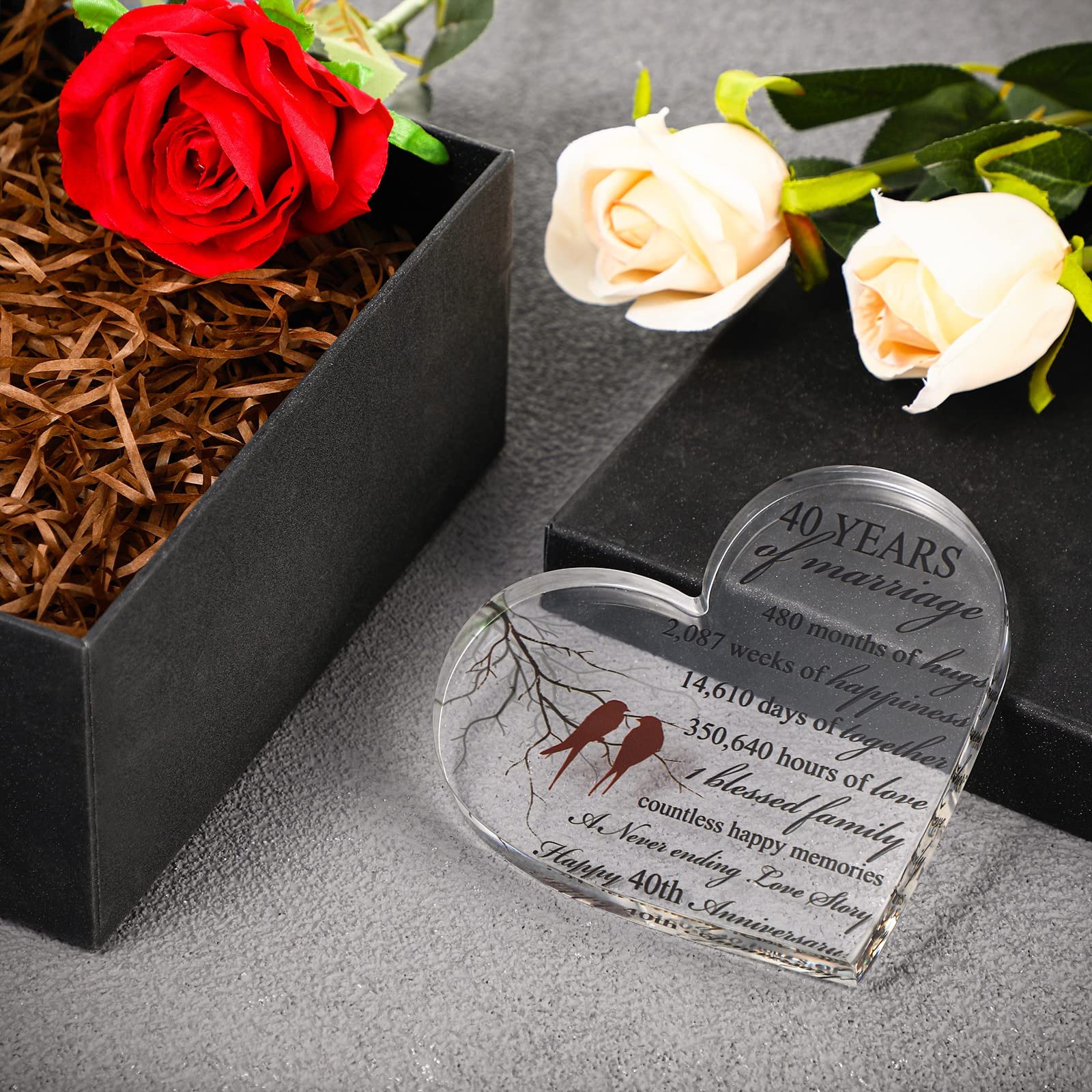 40 Years of Marriage Gift Wedding Anniversary Heart Keepsake for Husband Wife