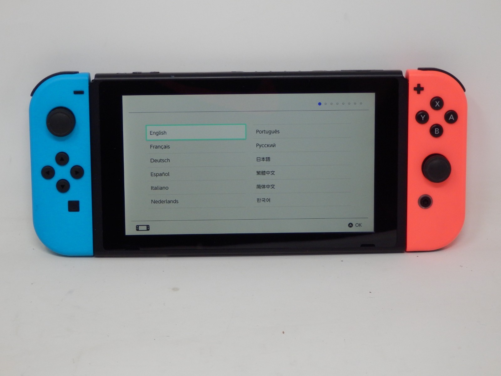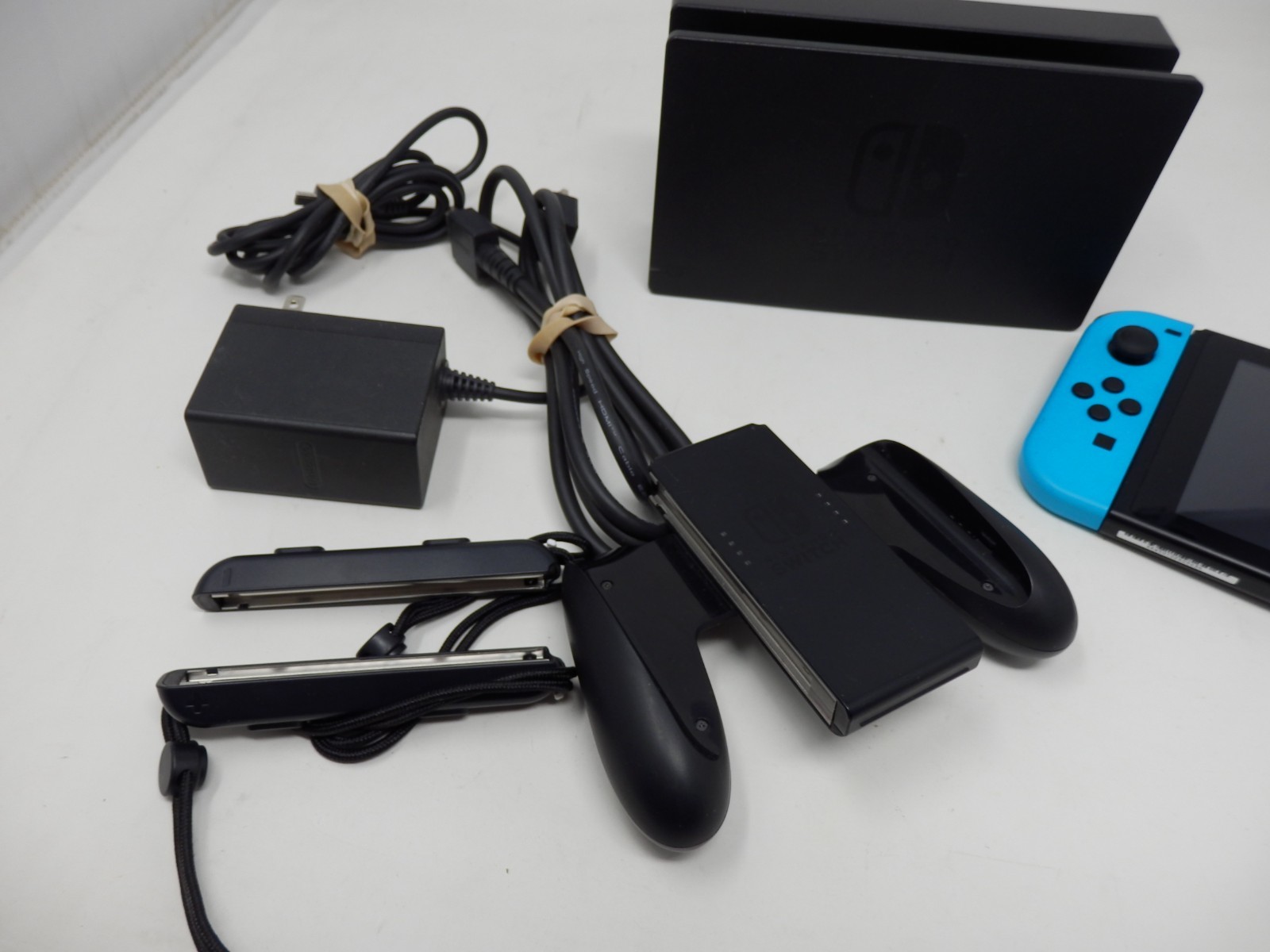 Nintendo Switch Neon Blue Neon Red Joy-Cons Model HAC-001 With Dock Charger Grip