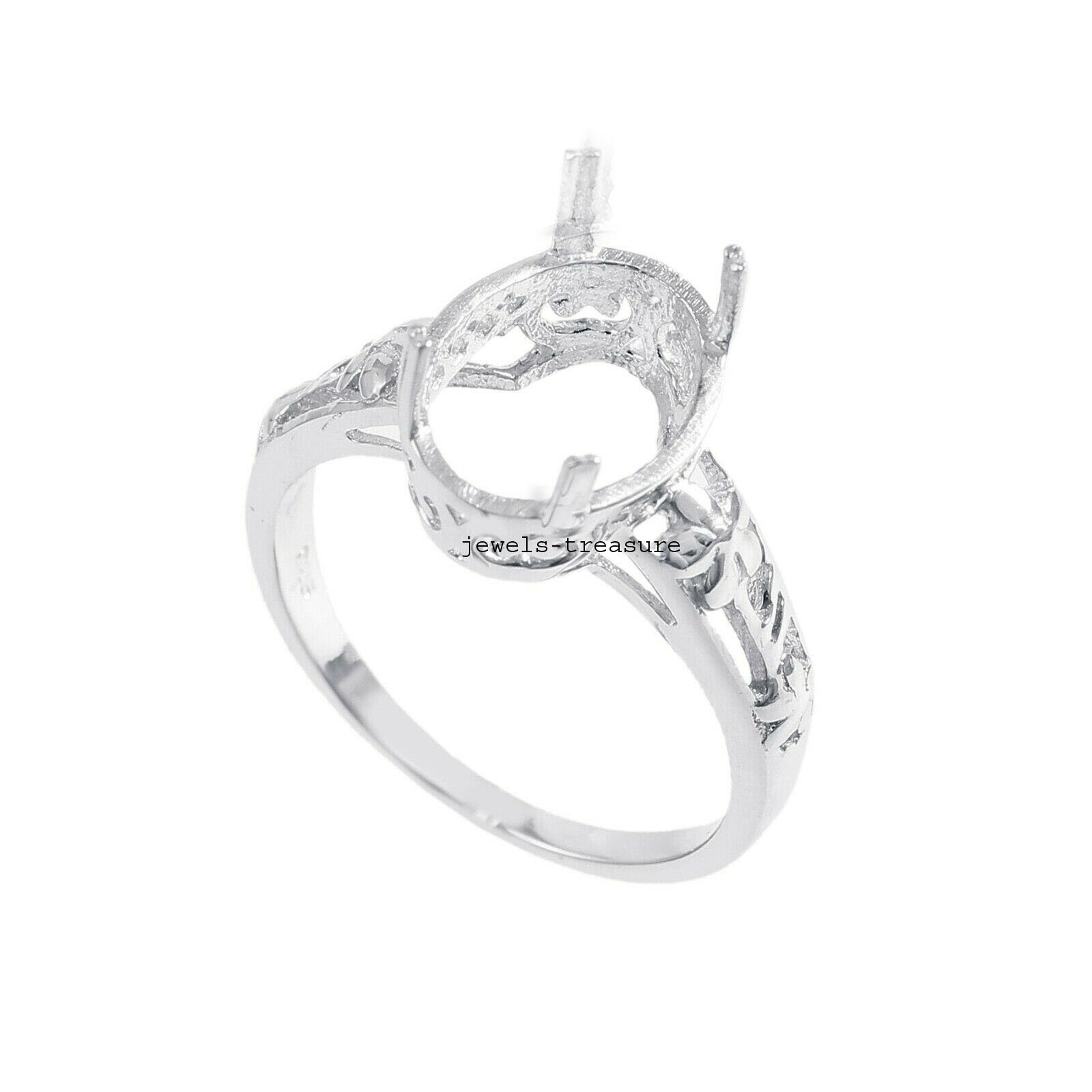 Semi Mount Ring Stone Setting Size 10X14 MM Oval Shape 925 Sterling Silver Ring
