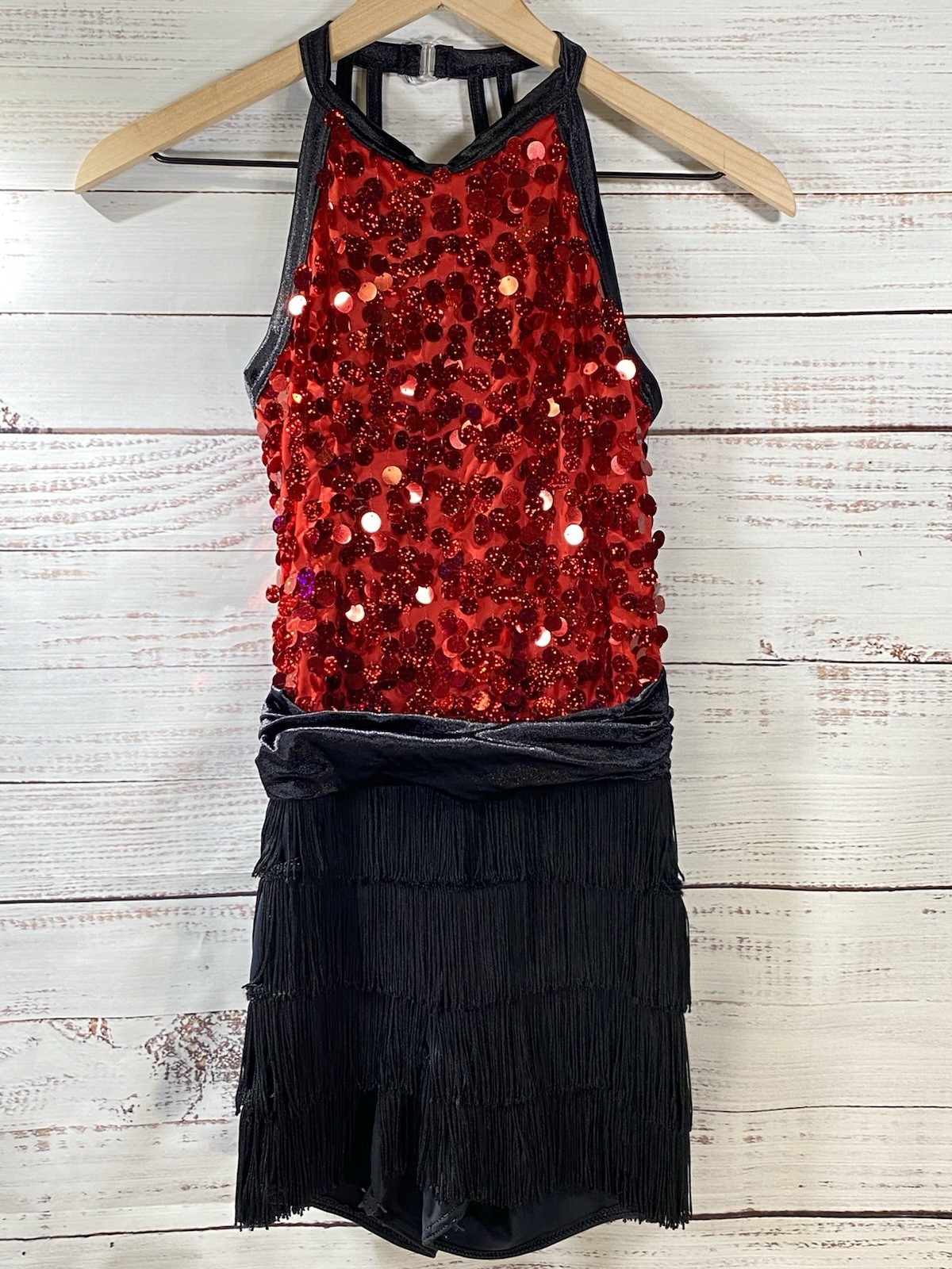 Weissman Red Sequence Black Fringe Dance Costume New Move Size Small Adult