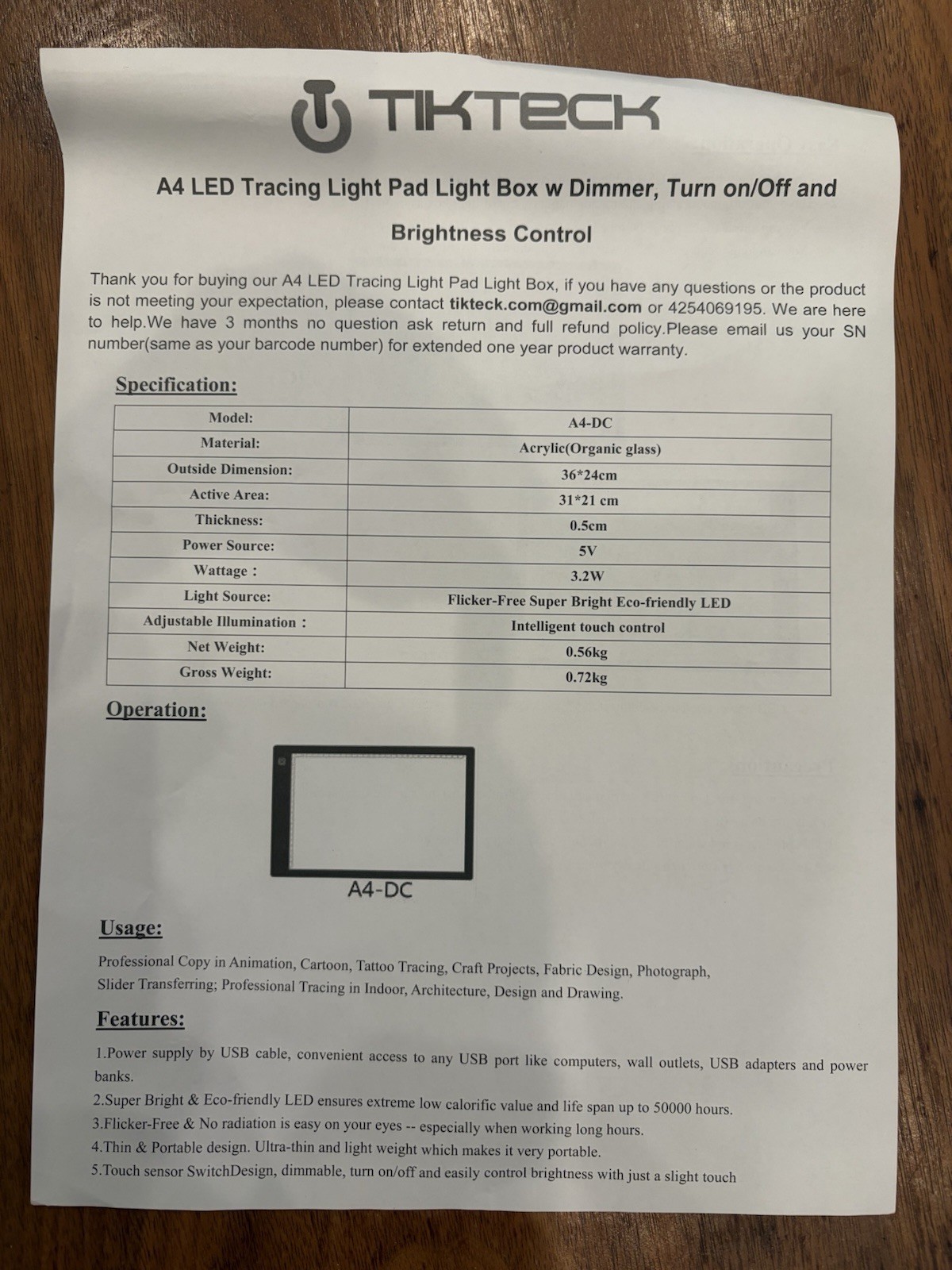 A4 Ultra-Thin Portable LED tracing Light Box Dimmable Brightness Black