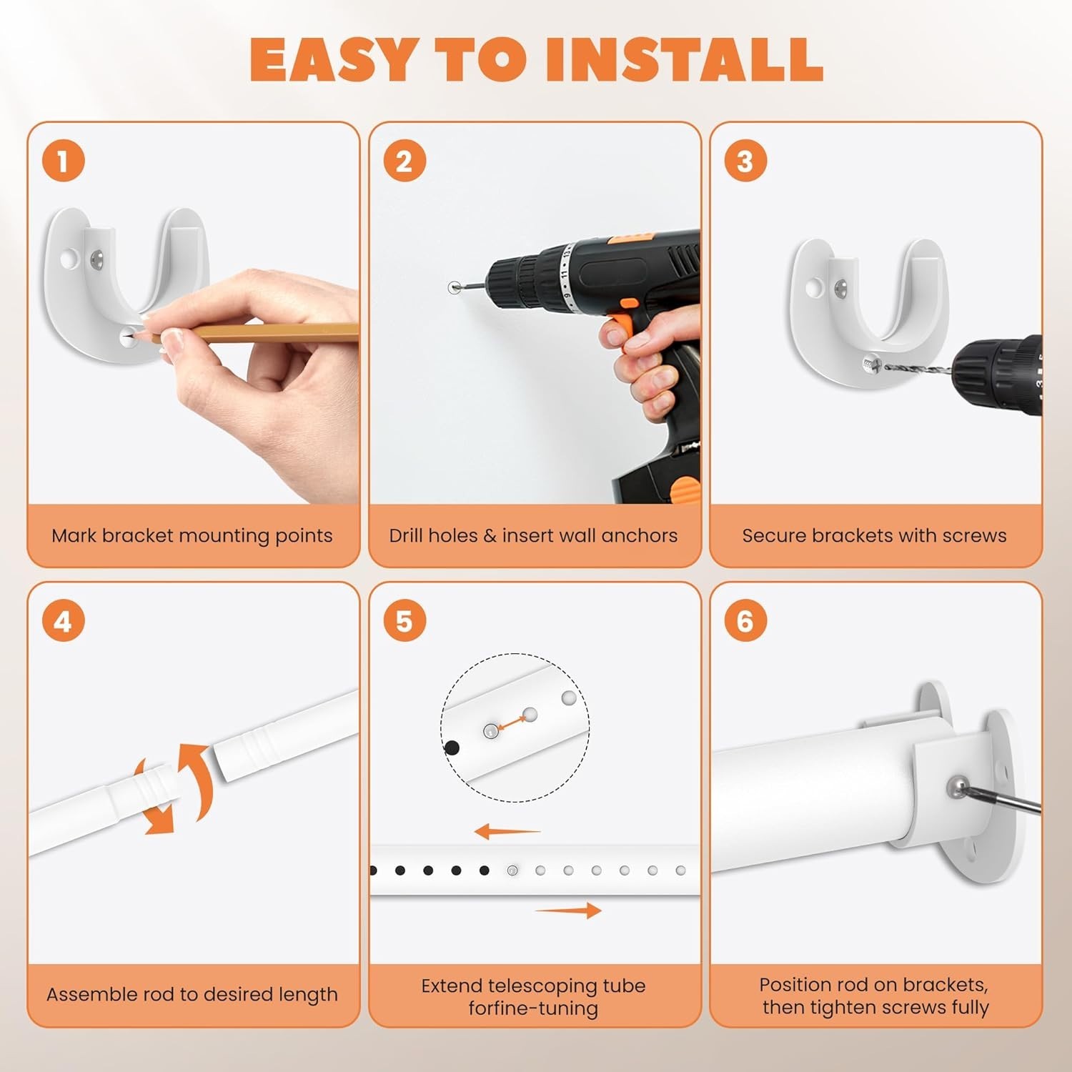 как выглядит Closet Rod 30-51 Inches, Adjustable Heavy Duty Metal White Closet Rods for Ha... фото