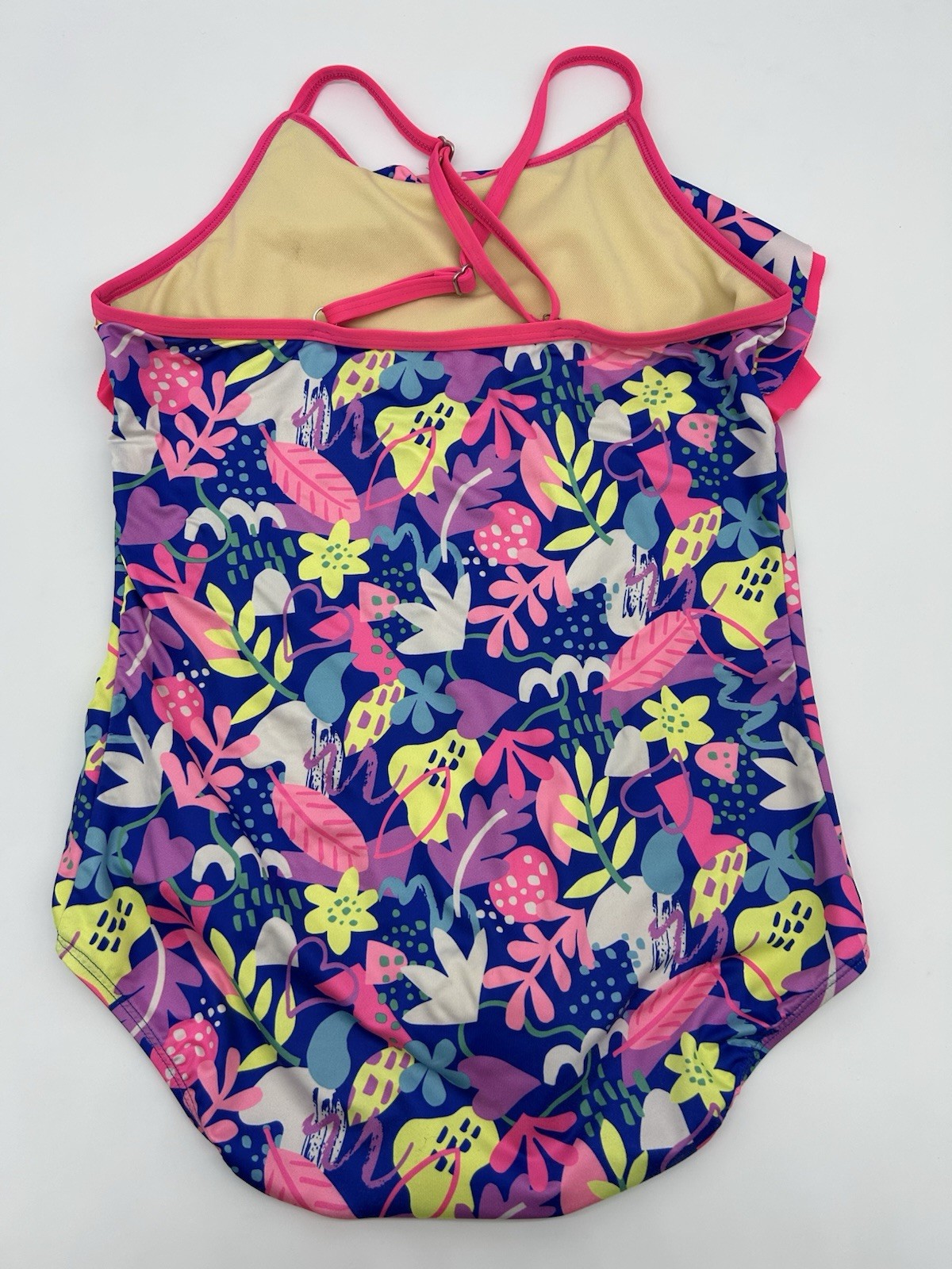 Lands' End Girls Blue Pink Floral Ruffle Crossback Bathing Suit Size 14