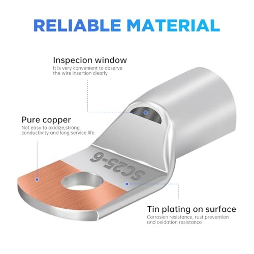 80PCS Copper Wire Lugs Battery Cable Ends Assortment AWG 2 4 6 8 10 12 Gauge
