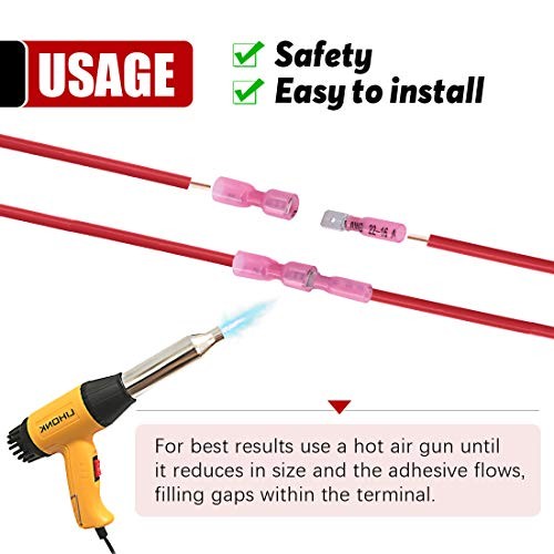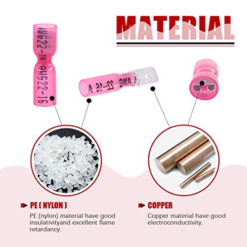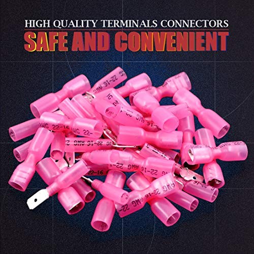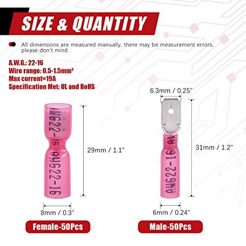 100Pcs Nylon Heat Shrink Fully Insulated Female Male Spade Wire Red / 22-16AWG