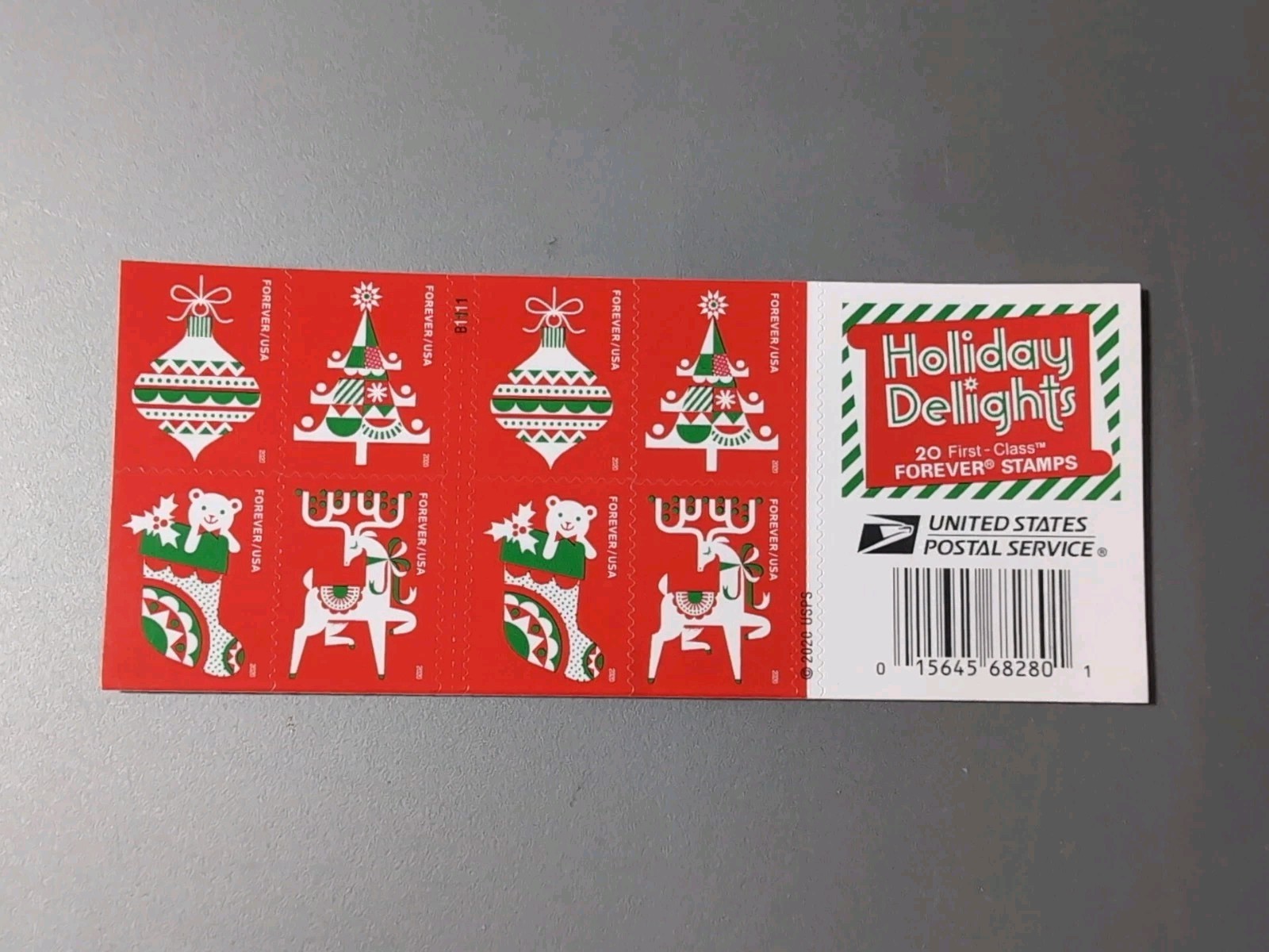 как выглядит USPS Forever Stamps Holiday Delights Booklet of 20 Self Stick фото