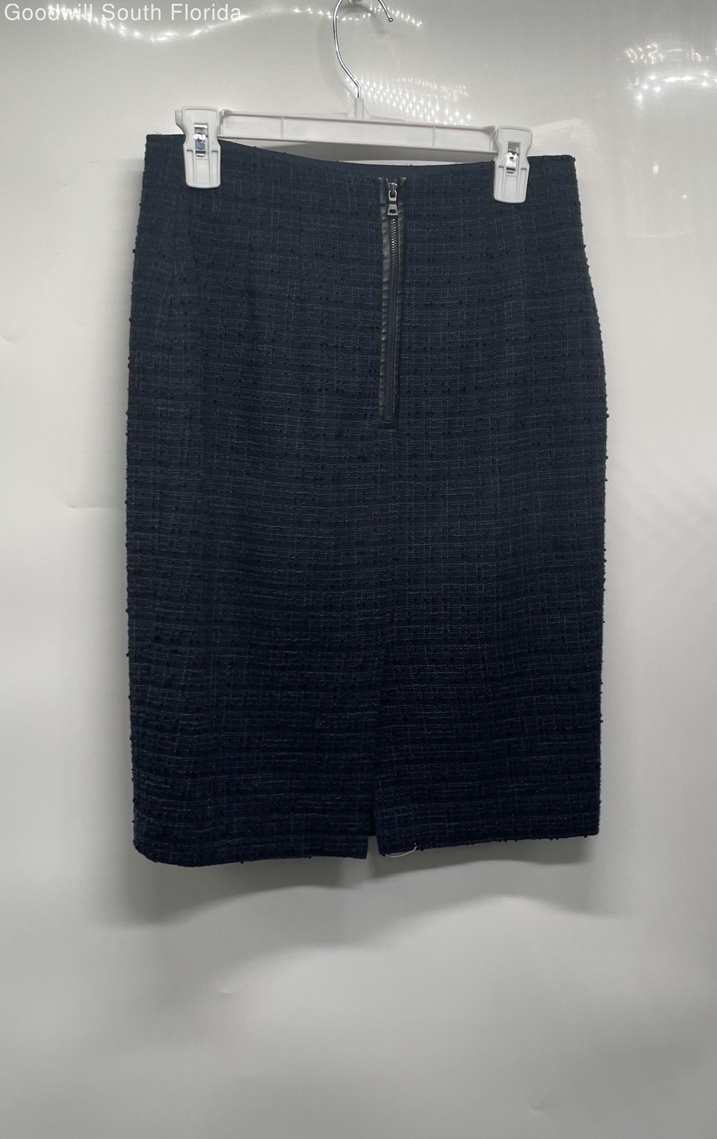 как выглядит Ann Taylor Womens Dark Blue Tweed Back Slit Straight Pencil Skirt Size 4 фото