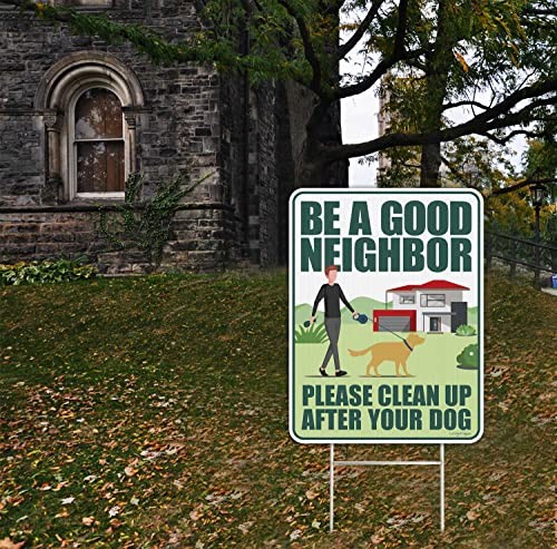 Clean Up After Your Dog Signs 2 Pack 12x9 with Metal Stake, No Pooping Signs