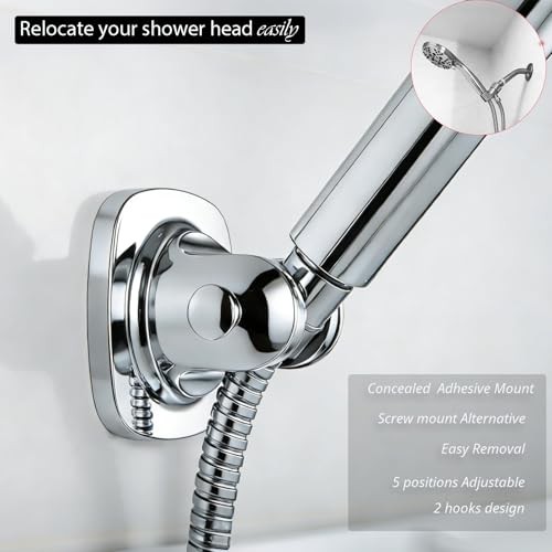 Wall Mount Handheld Shower Head Holder - 5 Angles Adjustable - Polished Chrome
