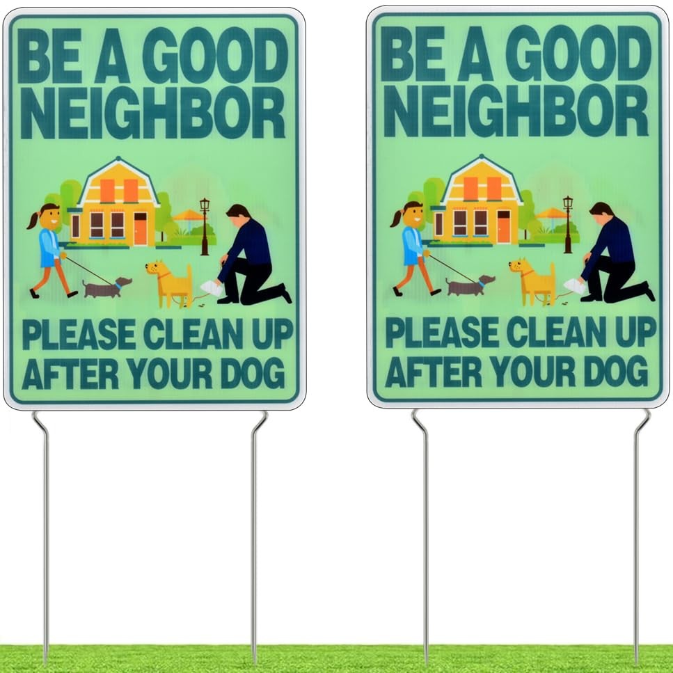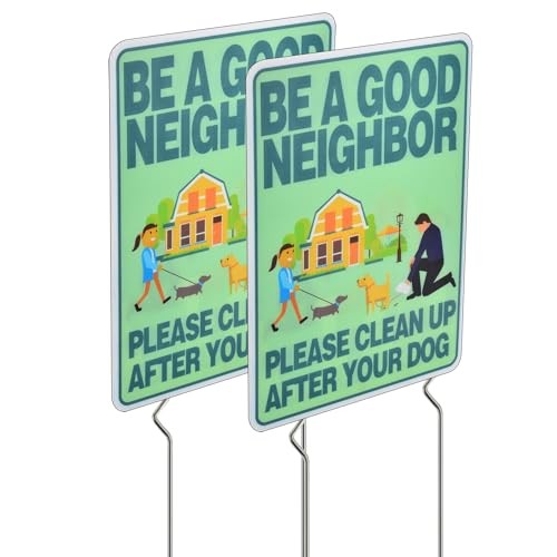 2 Pack Clean Up After Your Dog Sign with Metal Stakes, Double Sided No Dog