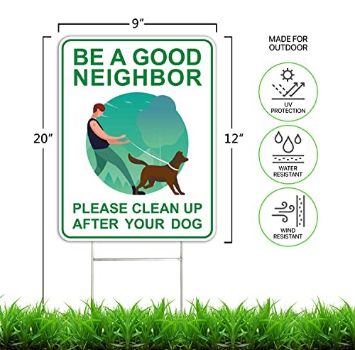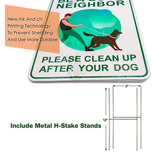 Clean Up After Your Dog Signs 2 Pack, 9 x 12 With Metal H-Stakes, green