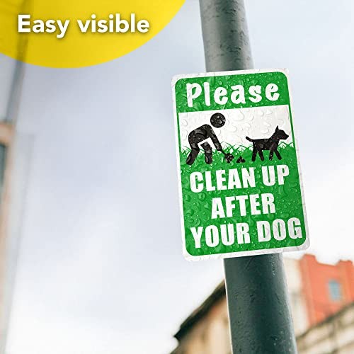 Clean Up After Your Dog Sign, 12x8 Reflective Aluminum Dog Signs No Pooping
