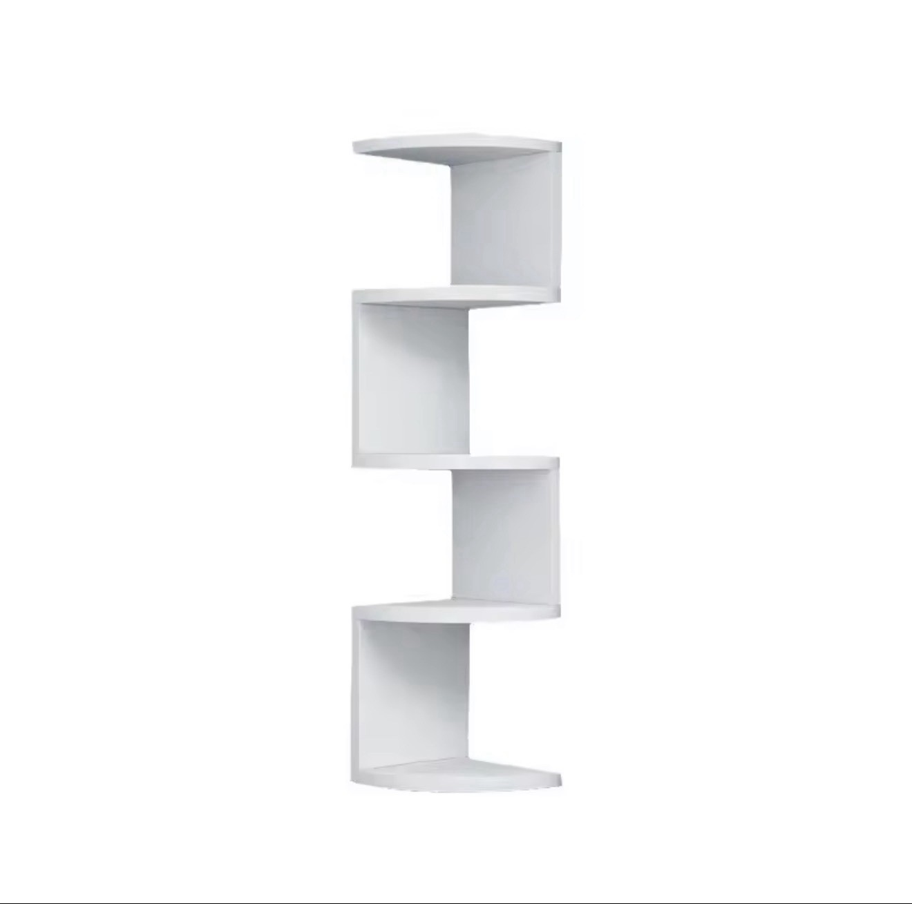 White 4-Shelf Wall Mounted Corner Shelf, Contemporary Solid Wood Matte Finish