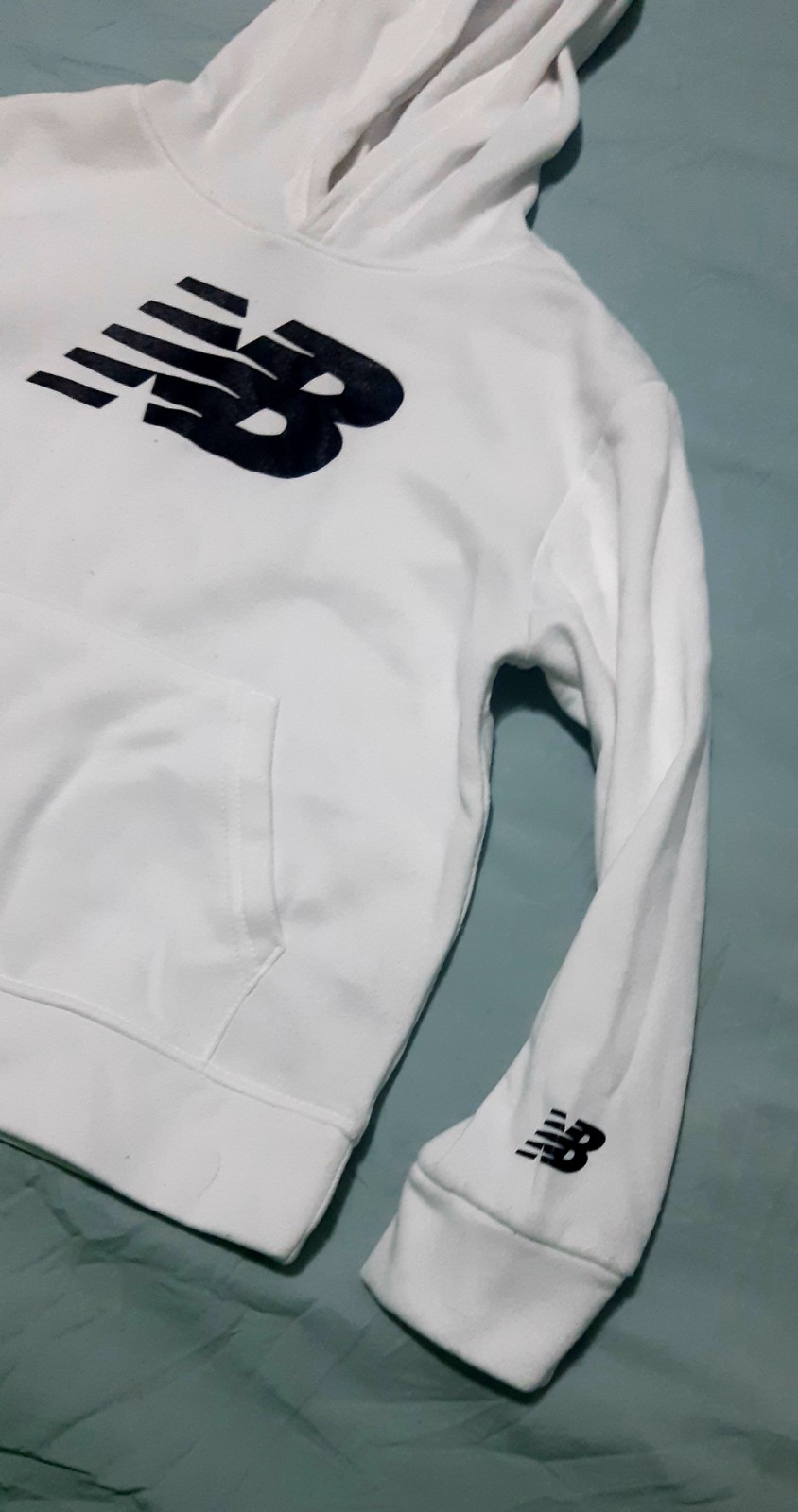 как выглядит New Balance Boys Hoodie Pants Set S 8 White Black Cotton Blend Casual фото