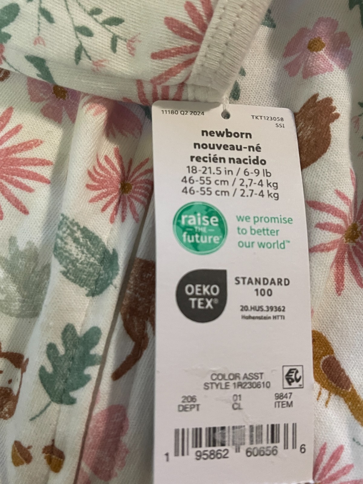 как выглядит Carters 1-Piece Footed Pajamas 2-Way Zip-Up Unisex Size Newborn Animal/Flowers фото