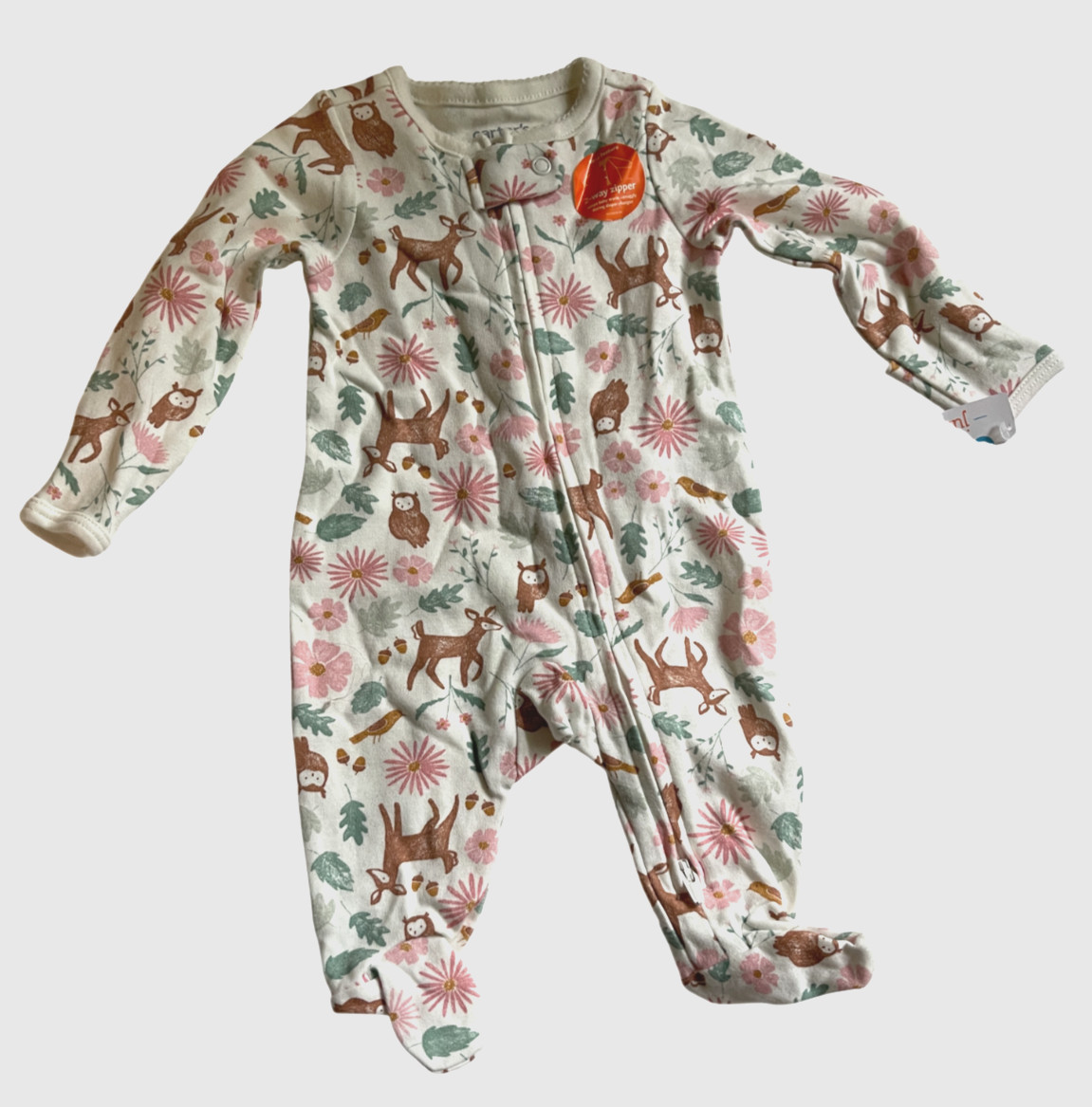 Carter's 1-Piece Footed Pajamas 2-Way Zip-Up Unisex Size Newborn Animal/Flowers