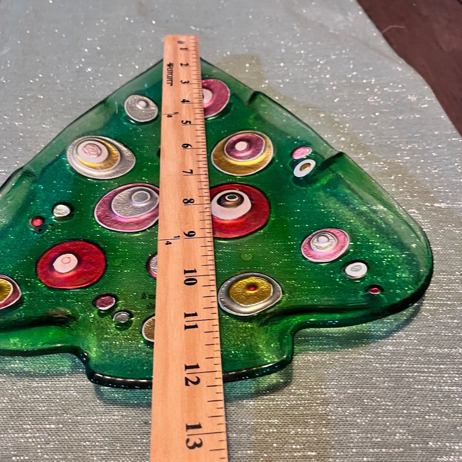 как выглядит Fused Glass Christmas Tree Shaped Serving Candy Dish Holiday Decor Ornaments фото