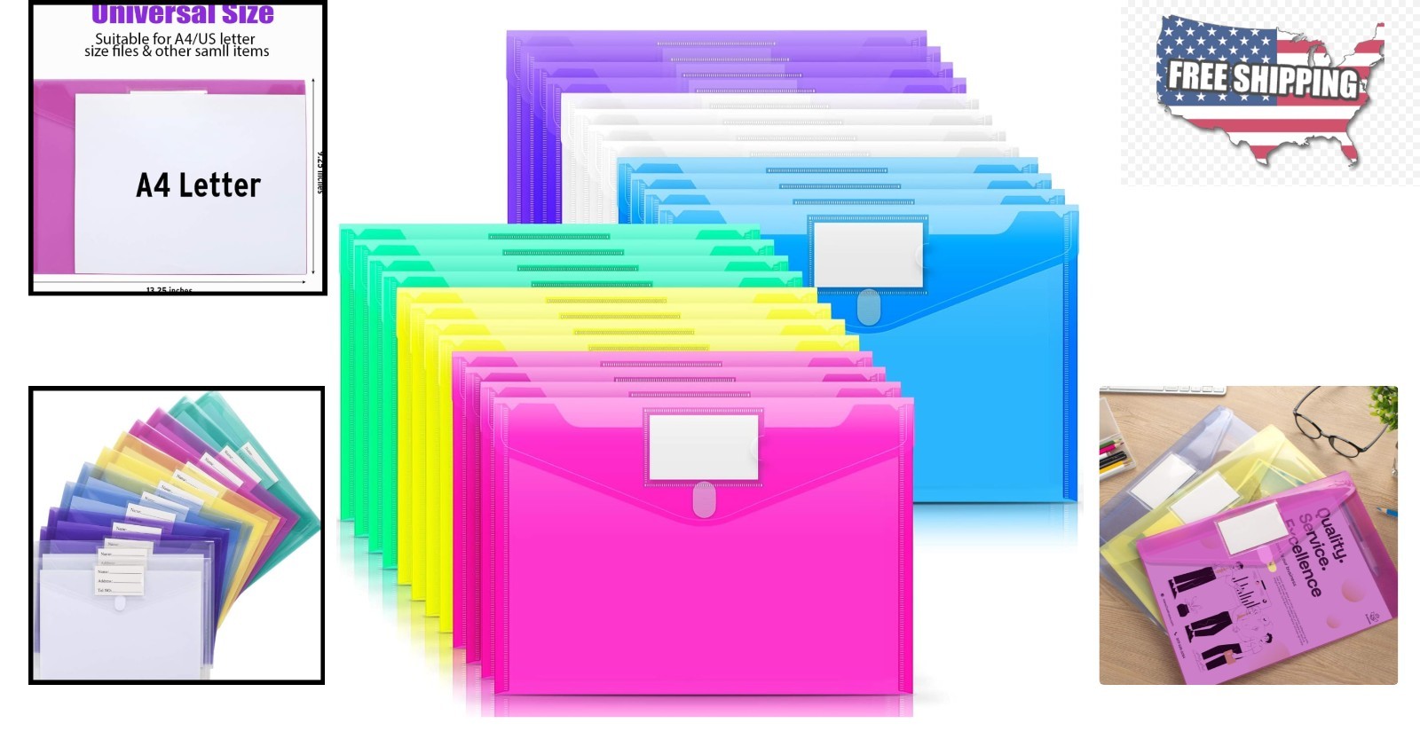 24 Pack Assorted Color Clear File Folders - Waterproof A4 Document Organizers
