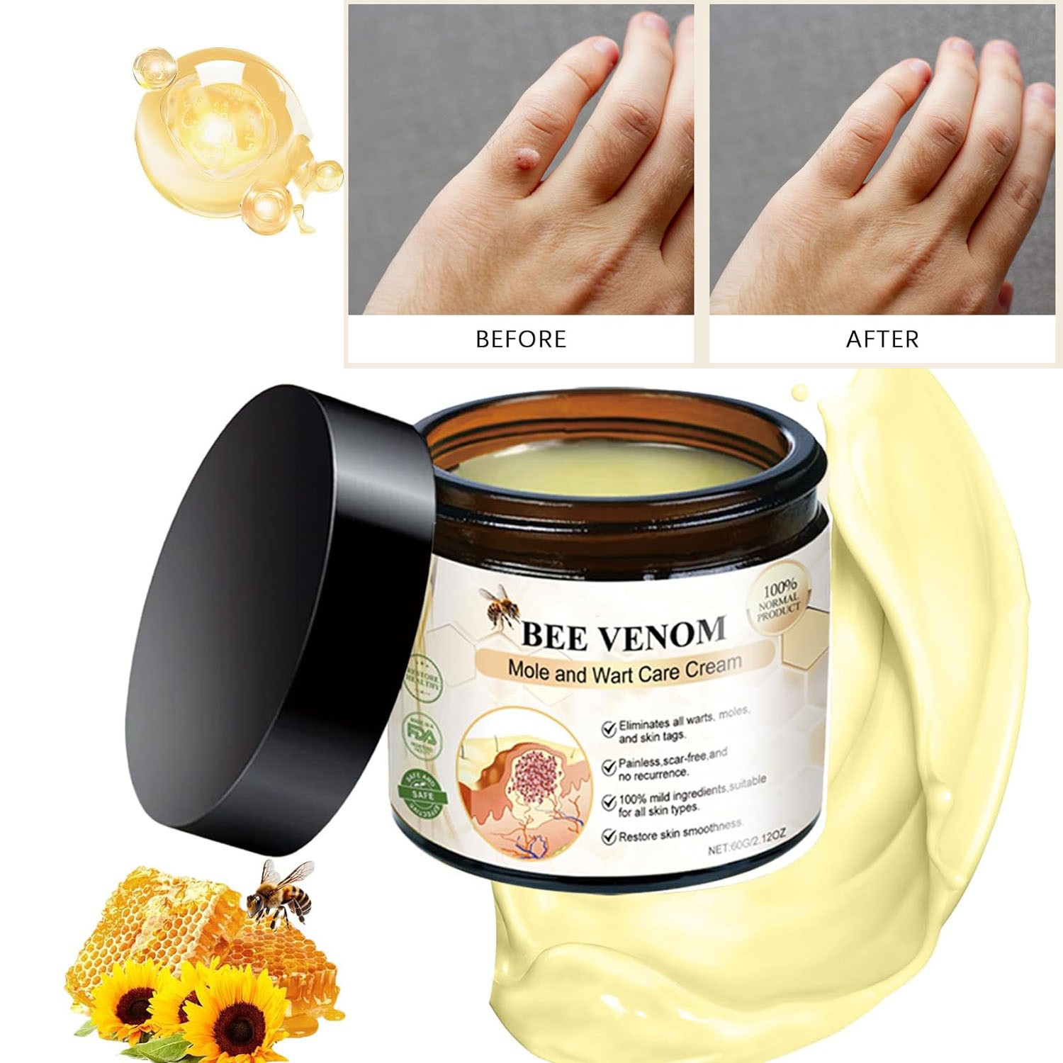 как выглядит Bee Venom Skin Tag Removal Treatment Cream Body Care Mole Corn Wart Remover 60g фото