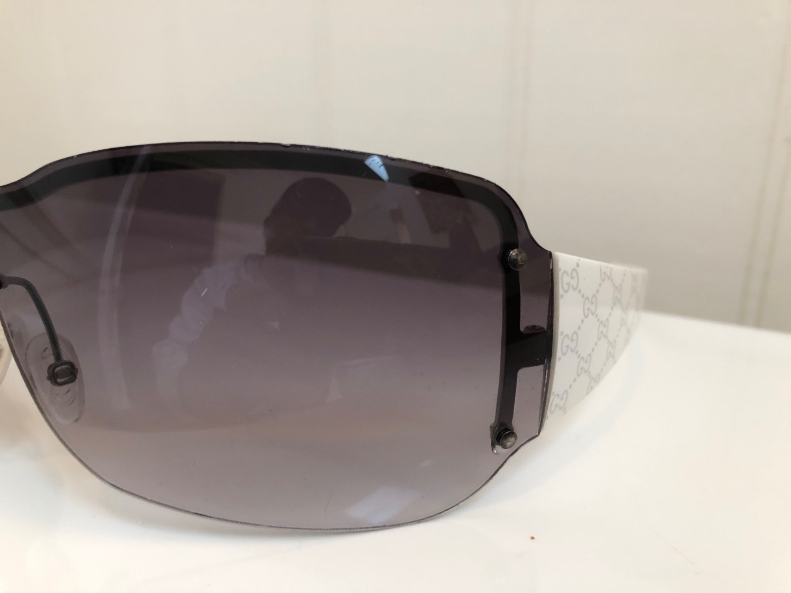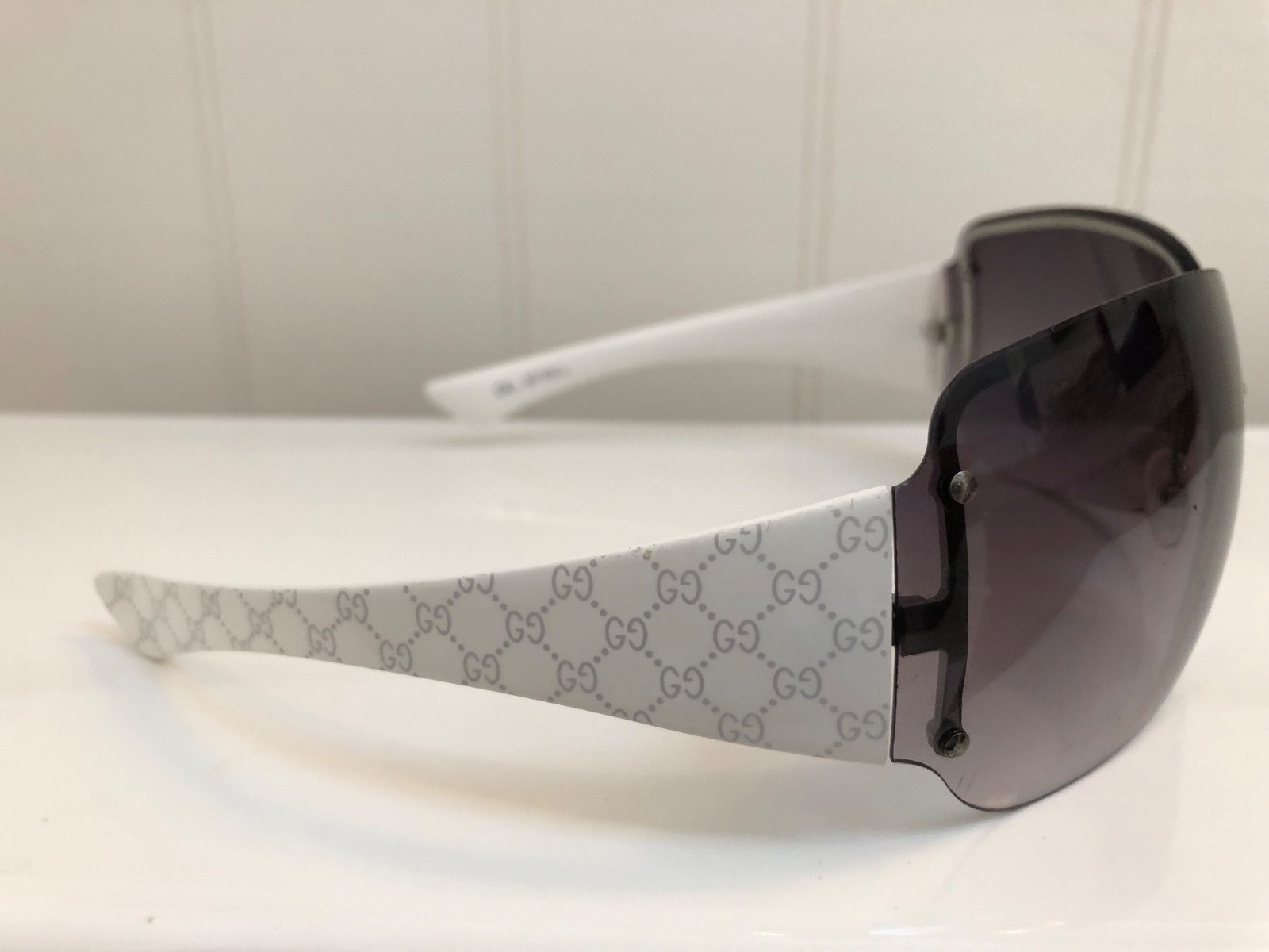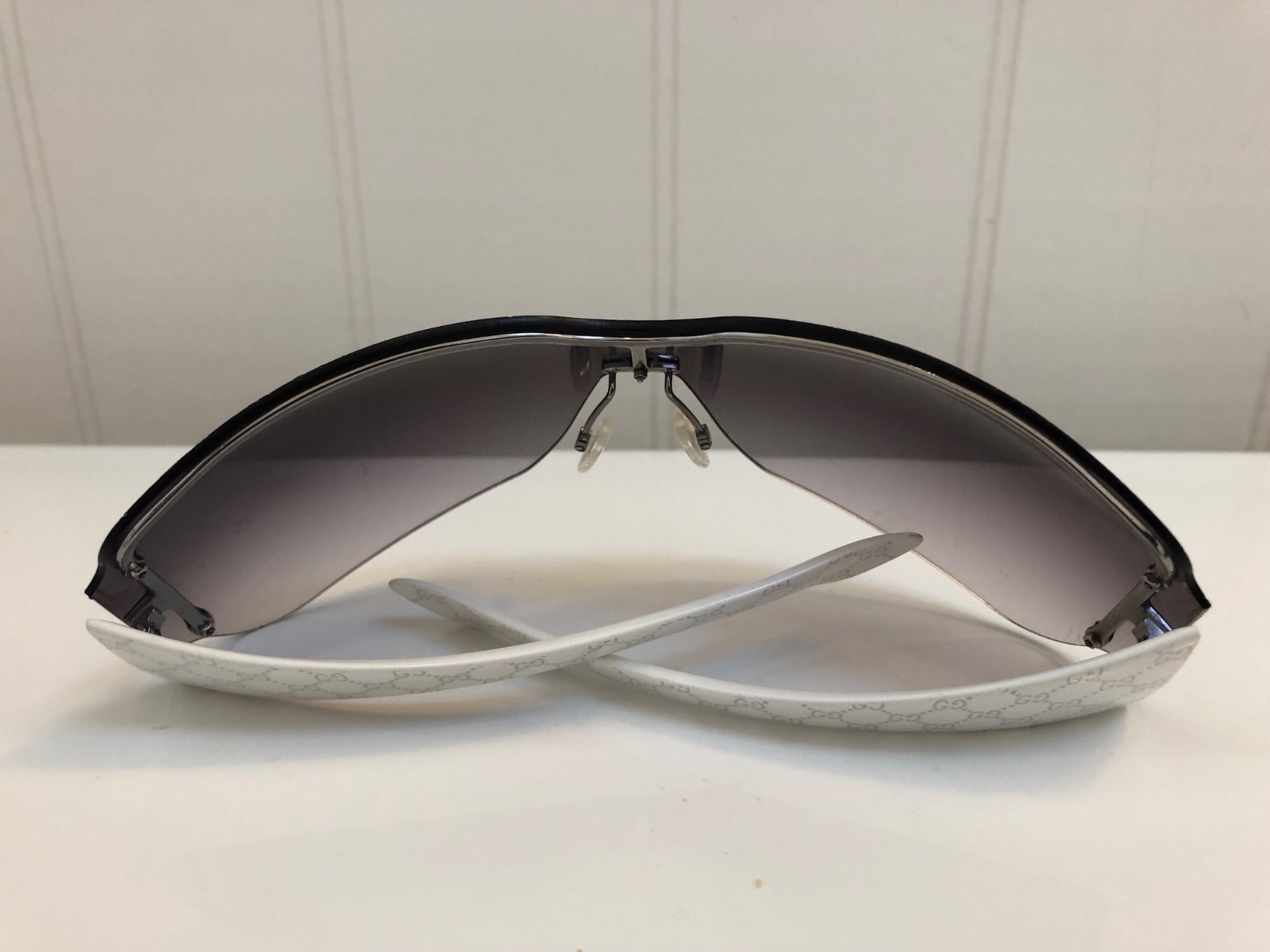 VINTAGE Authentic Gucci Shield Sunglasses, GG 1825/S. White Monogram.