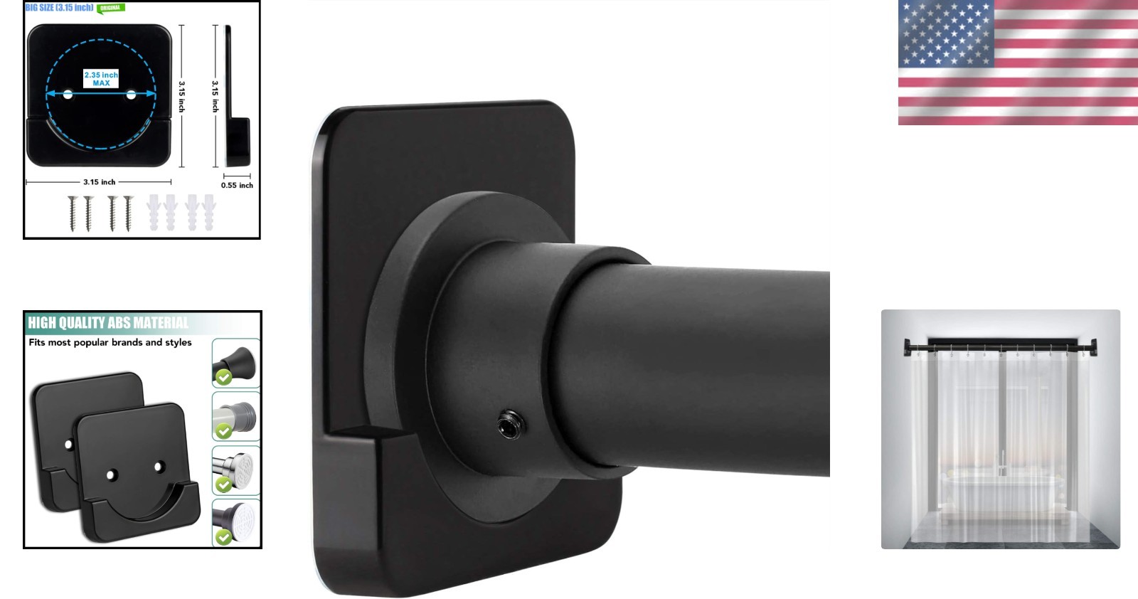 Elegant Black Shower Curtain Rod Holder - No Drilling, 2 Pack - Adhesive Design