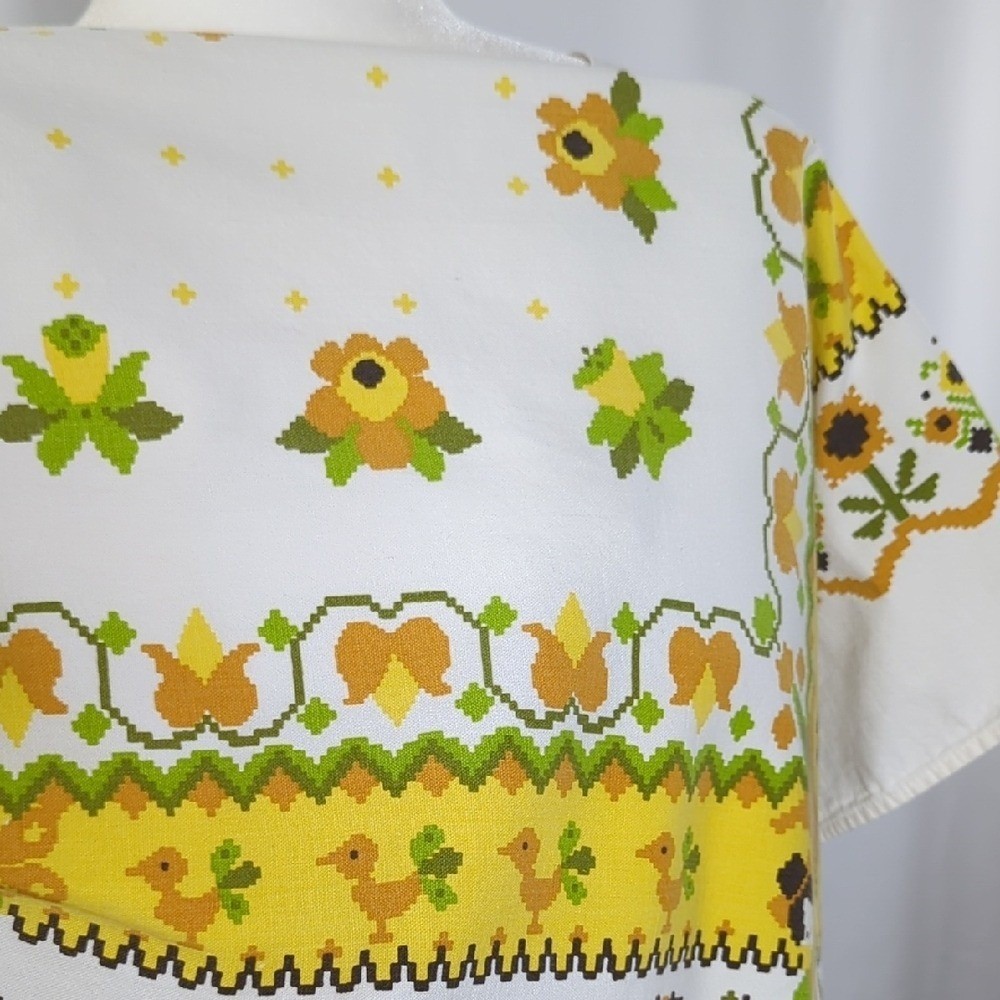 как выглядит Vtg Retro Skirt Handmade Folk Art Cottage Scandinavian Olive Yellow Cotton Large фото