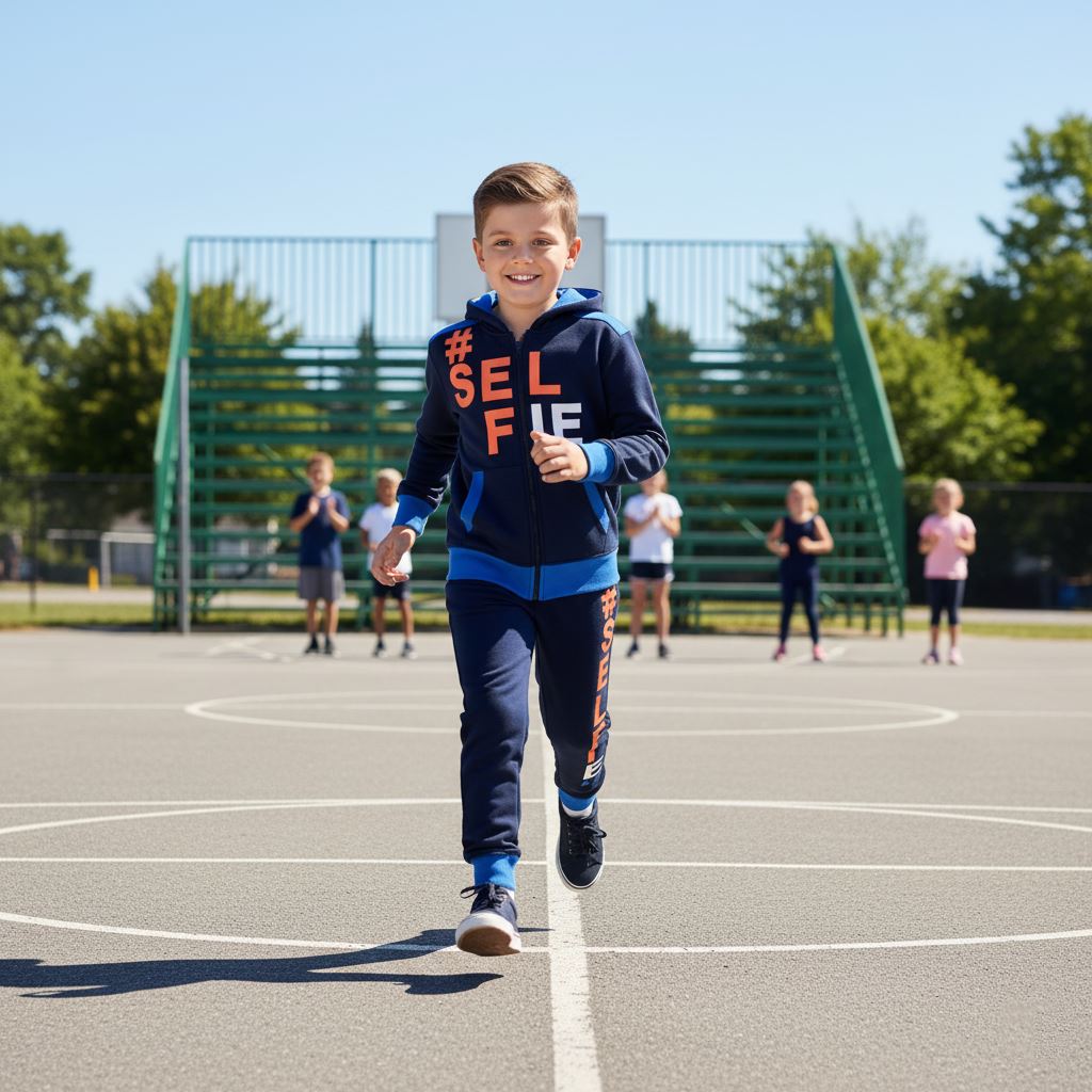 Kids Girls Boys Selfie Tracksuit Navy Hooded Hoodie Bottom Jogging Suit Joggers