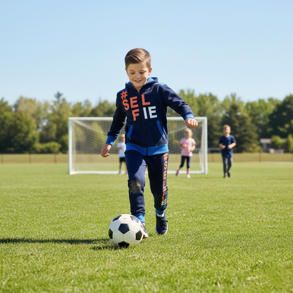как выглядит Kids Girls Boys Selfie Tracksuit Navy Hooded Hoodie Bottom Jogging Suit Joggers фото