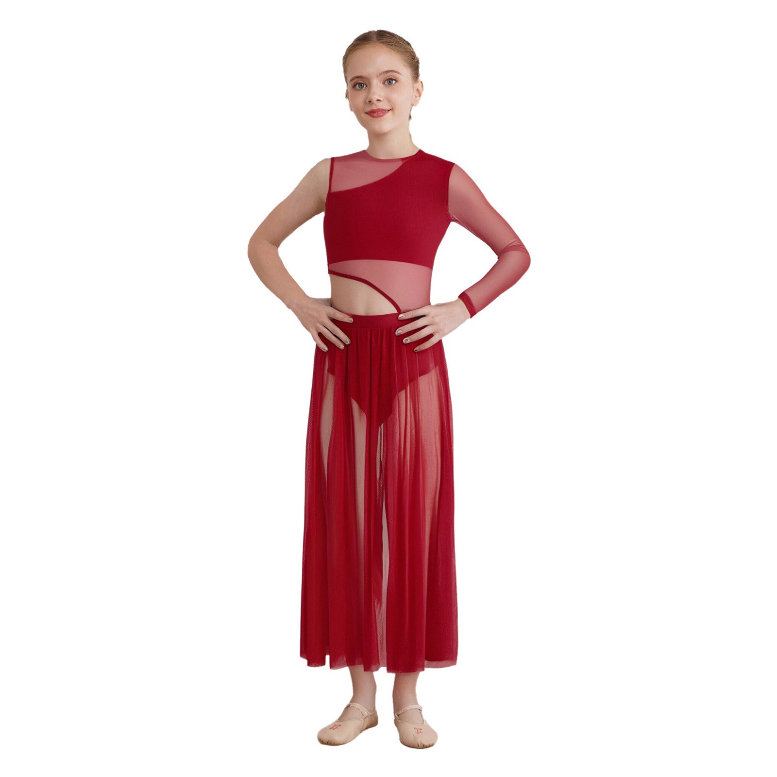Girls Lyrical Dance One Shoulder Long Sleeve Ballet Leotard Skating Dress