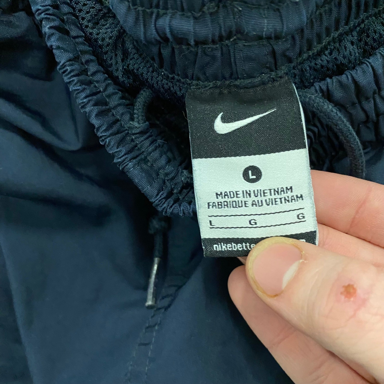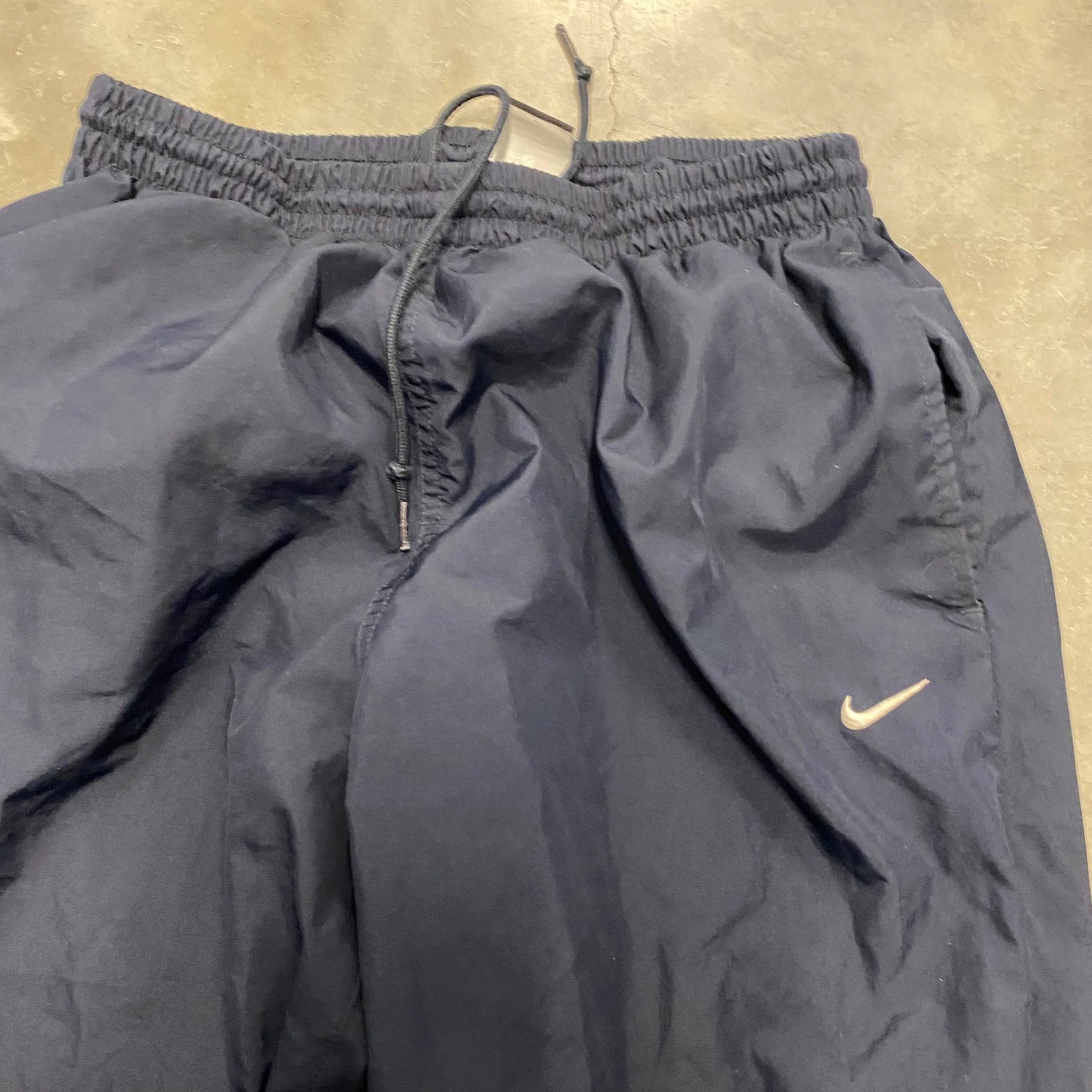 Nike Mens Navy Blue Nylon Windbreaker Track Pants Mesh Lined Large Swoosh Logo