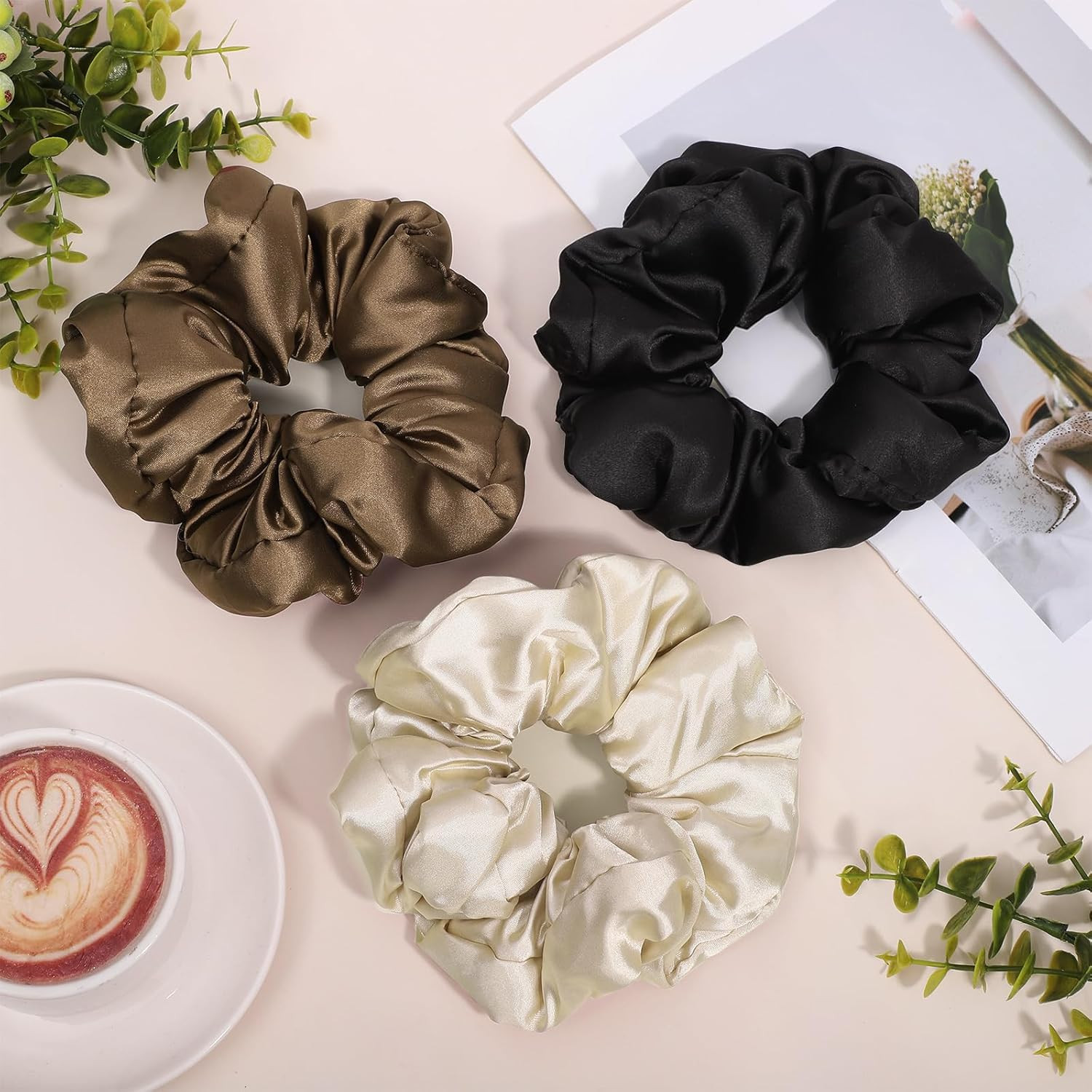 Large Satin Hair Scrunchies - 3 Pack, 6 Inch No-Damage Sleep Hair Ties