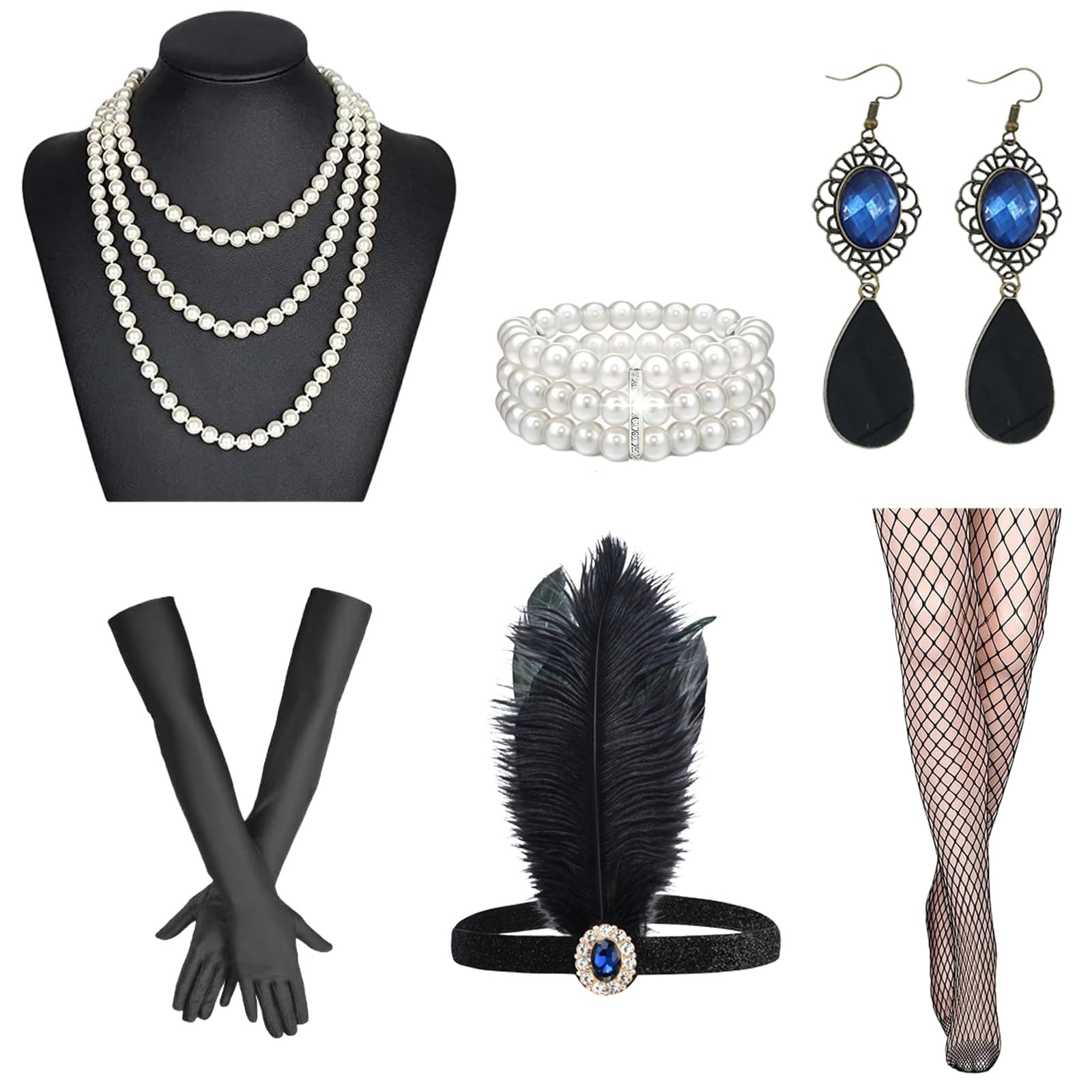 Included Components: Headband, Gloves, Necklace, Earrings, Fishnet Socks