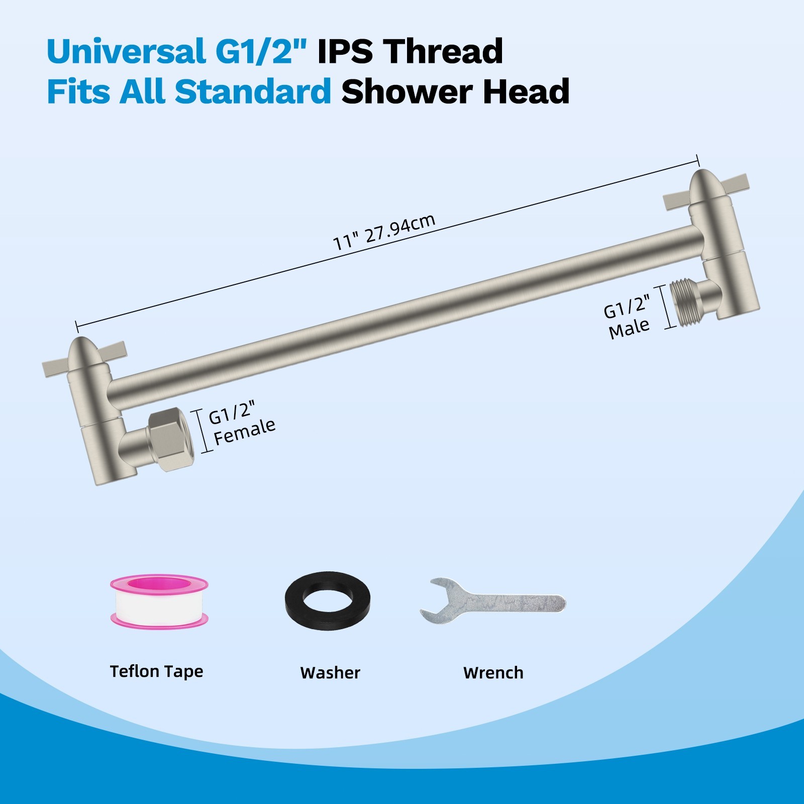11 Shower Head Extension Arm, Solid Brass Flexible Shower Head Extender