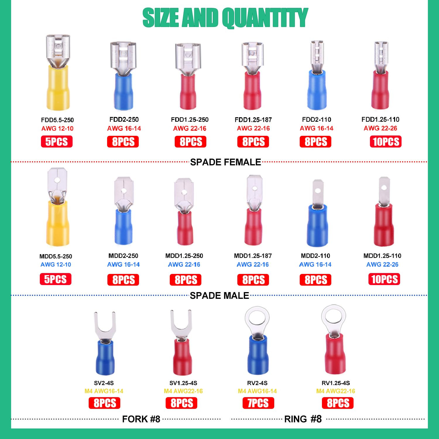 как выглядит /Spade Crimp Connectors 2.8Mm/4.8Mm/6.3Mm Male and Female Spade Connector Kit In фото
