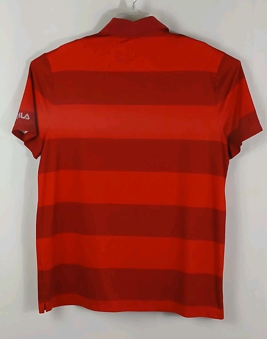 как выглядит Fila Red Stripe Polo Shirt Mens Size Large 2 Button Neck Closure - EUC Free Ship фото