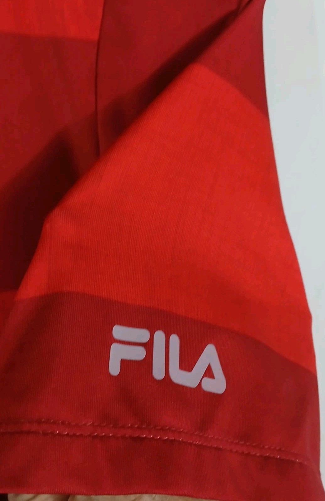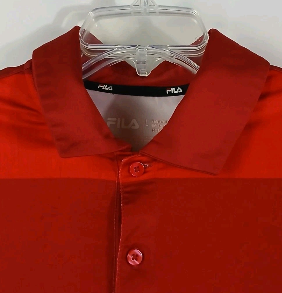 Fila Red Stripe Polo Shirt Mens Size Large 2 Button Neck Closure - EUC Free Ship