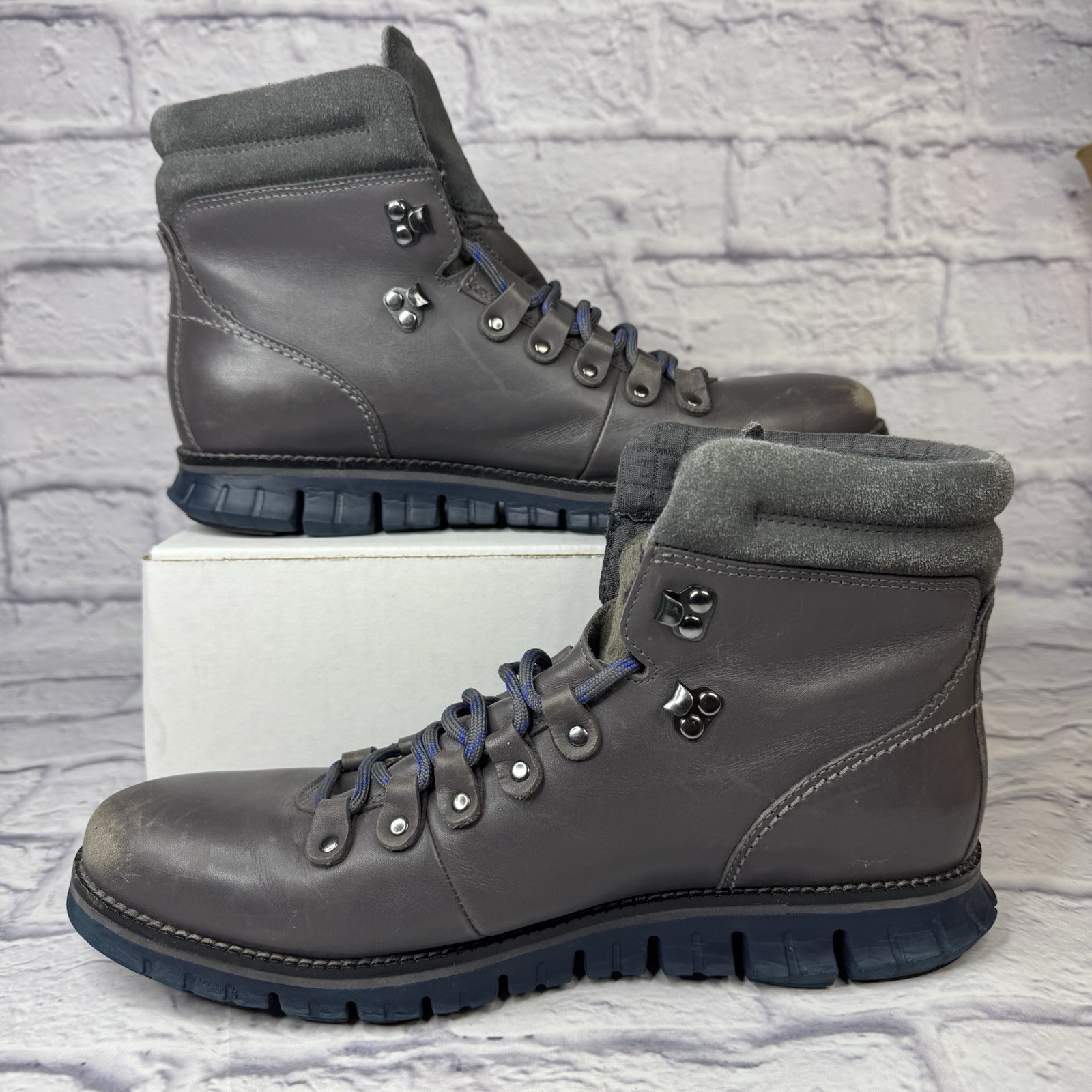 как выглядит Cole Haan Mens Boots 9.5 Zerogrand Waterproof Gray Leather Hiking C36295 фото