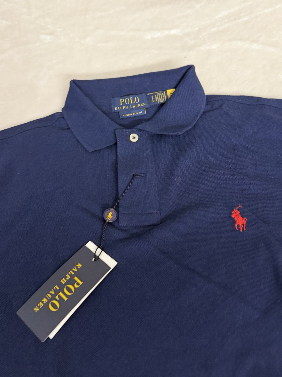 Polo Ralph Lauren Custom Slim Fit Navy Blue Cotton Polo Shirt Men's S