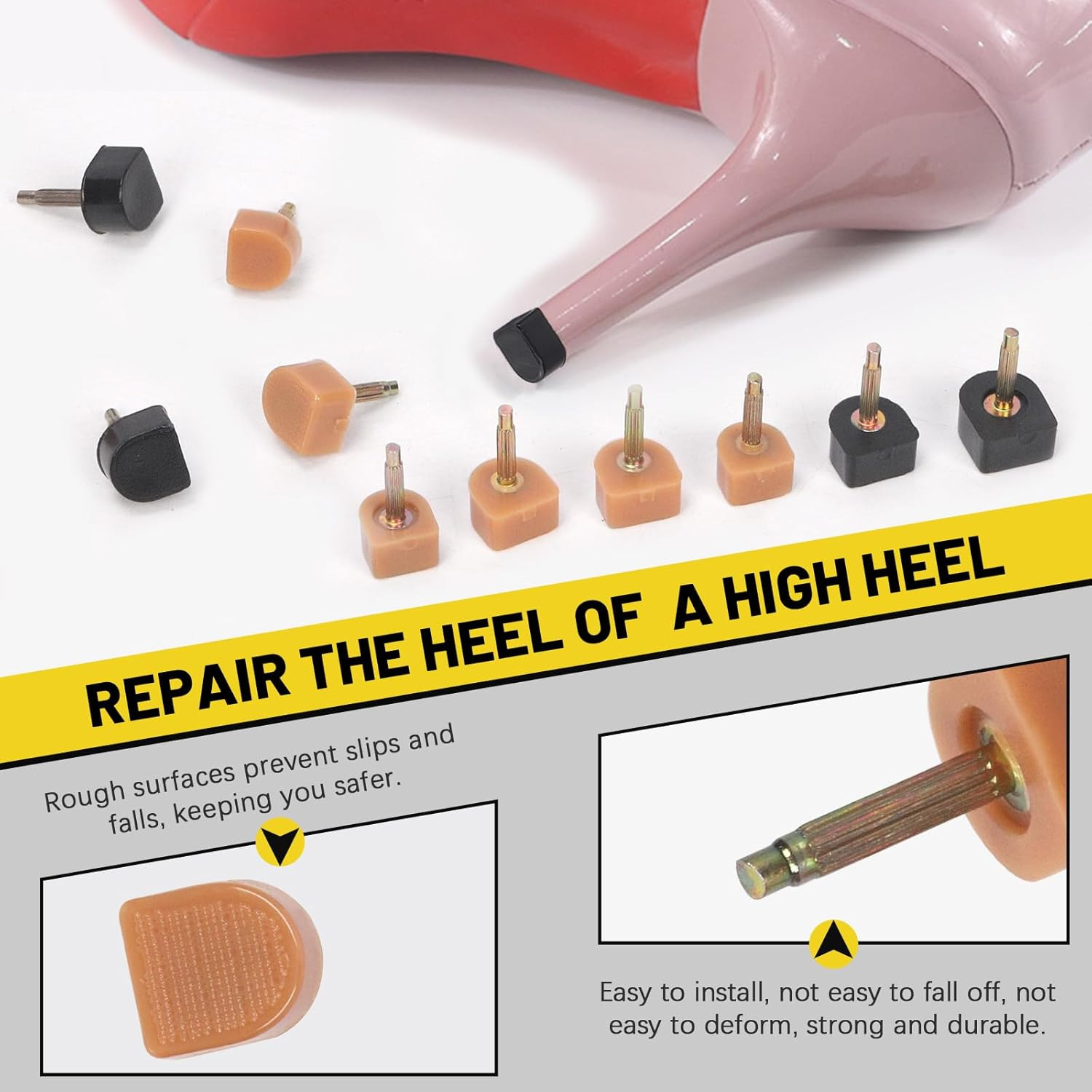 30 Pairs 5 Sizes High Heel Replacement Tips Pin Kit with 6 Heel Caps Remove ...