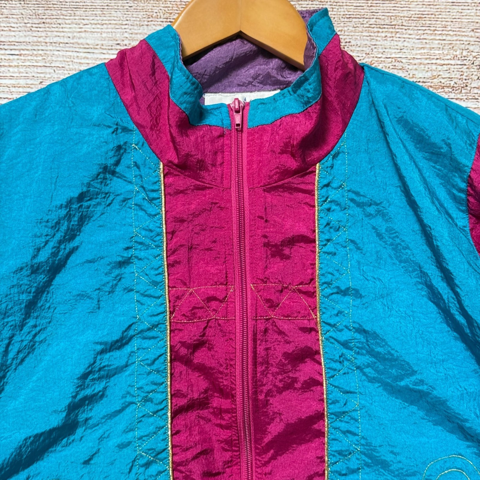 как выглядит Vintage Points West Windbreaker Jacket Womens L Colorblock Teal Pink 90s фото