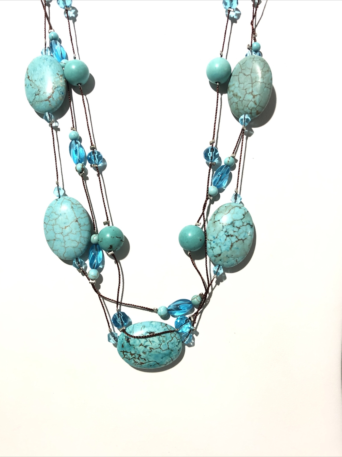 как выглядит Women s Turquoise Bead Multi-Strand Tier Necklace W/ Blue Beads- 18 Adjustable фото