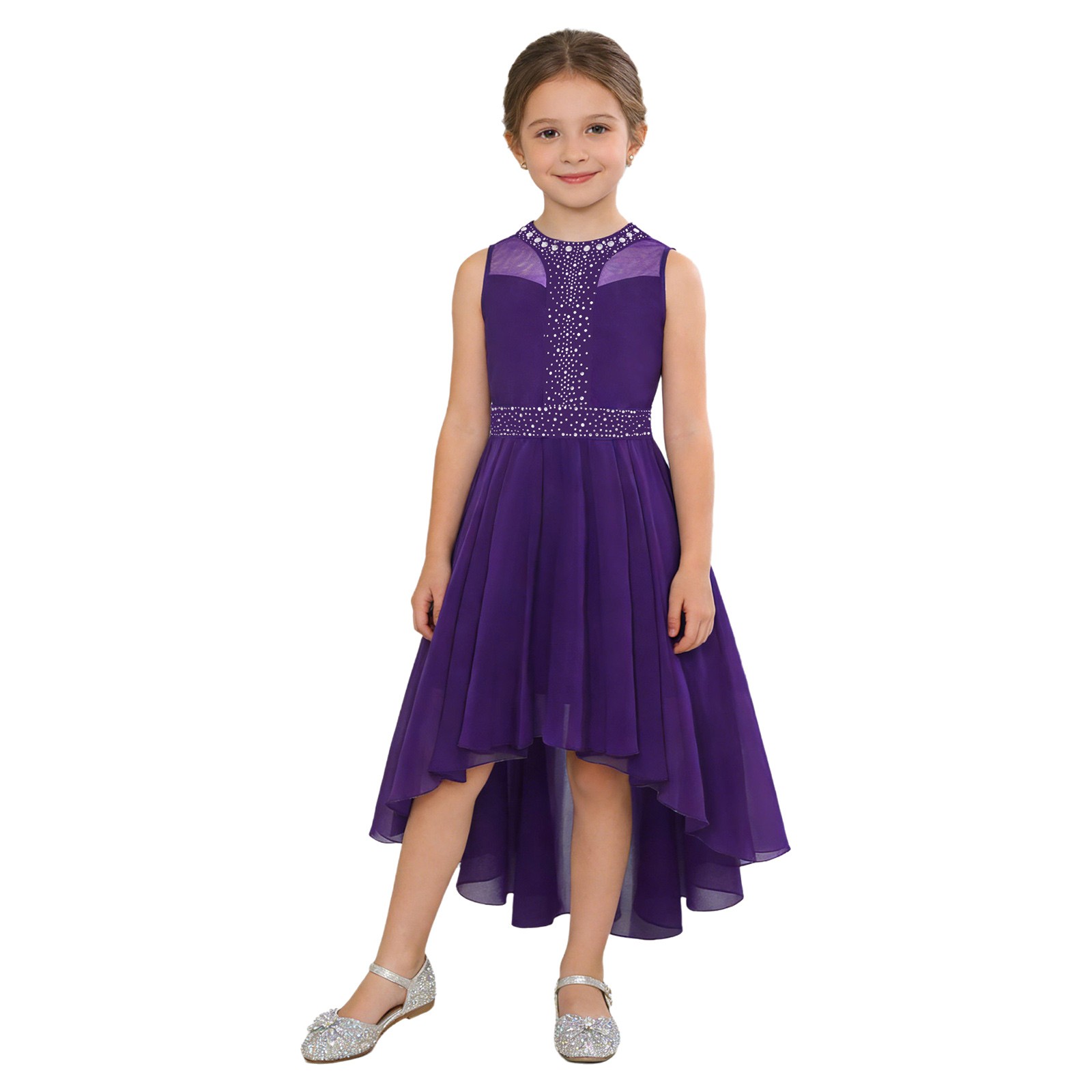 как выглядит Kids Girls Rhinestone Performance Festival Spliced Dresses Dancewear Party Mesh фото