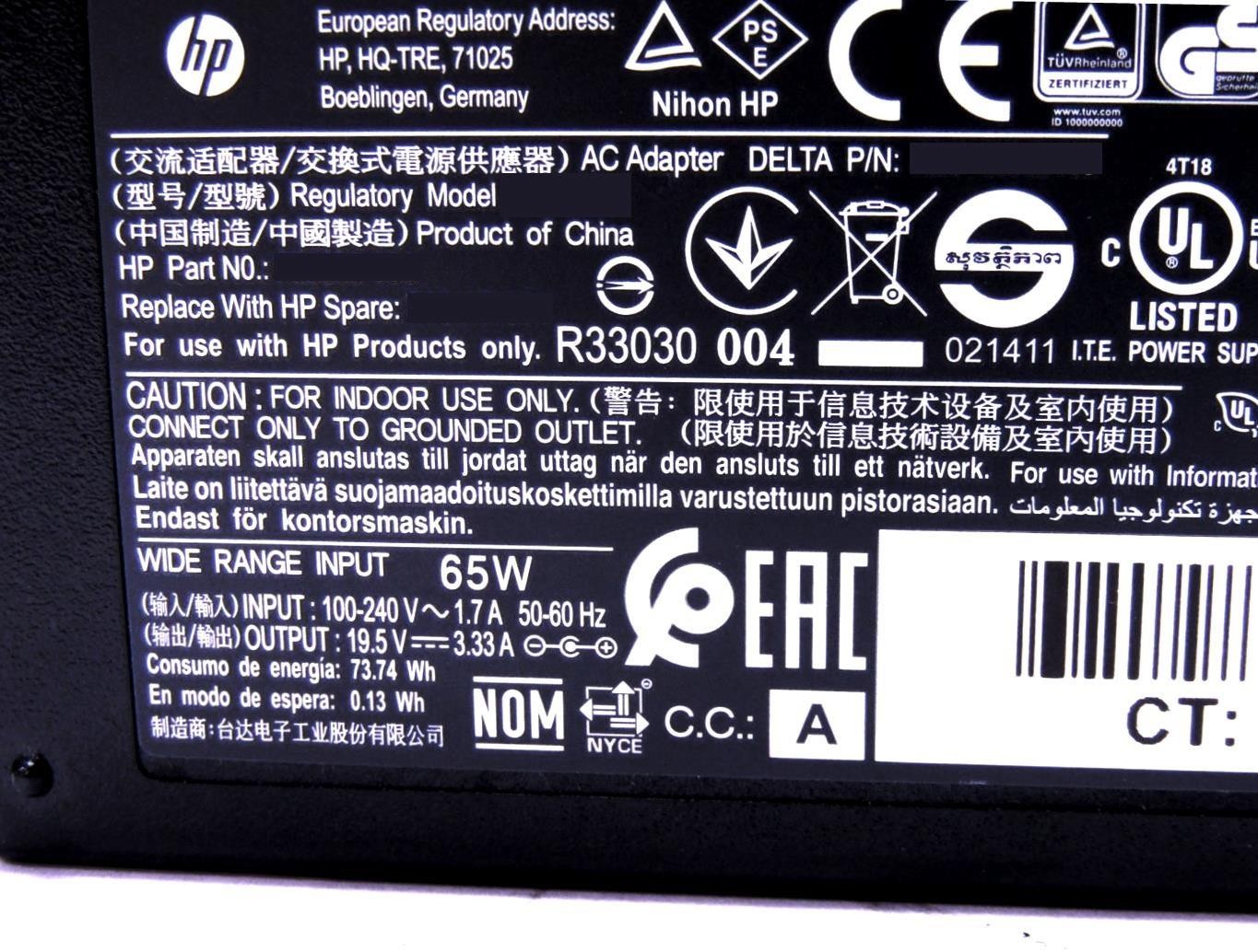 HP 4.5mm 19.5V 65W Blue Tip AC Adapter For 840 G5, ProBook 640 G6