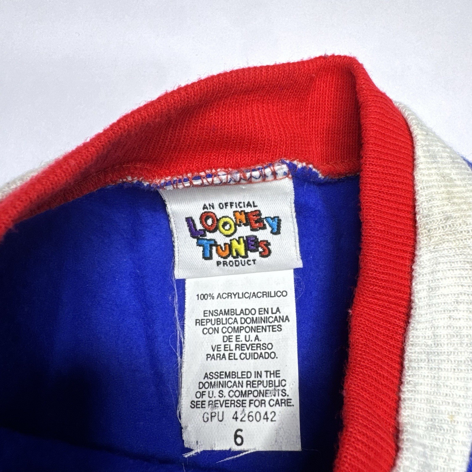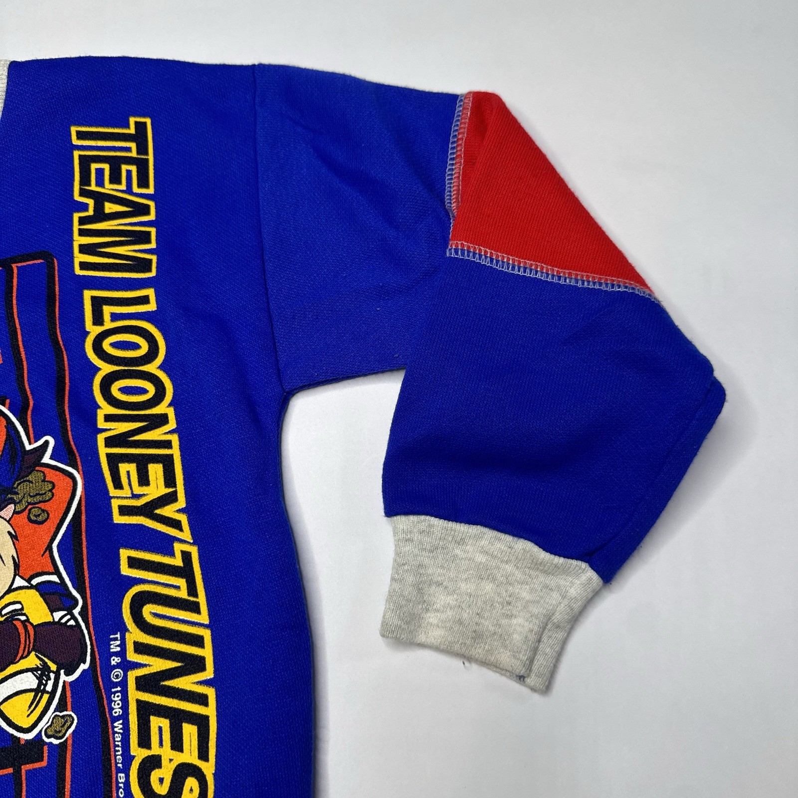 Vintage 90s Looney Tunes Taz Football Blue Kids Pullover Sweatshirt Size 6 1996