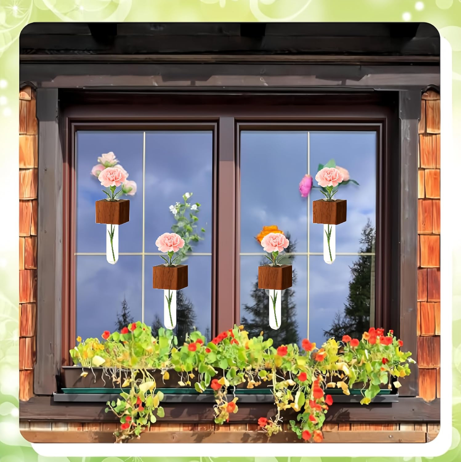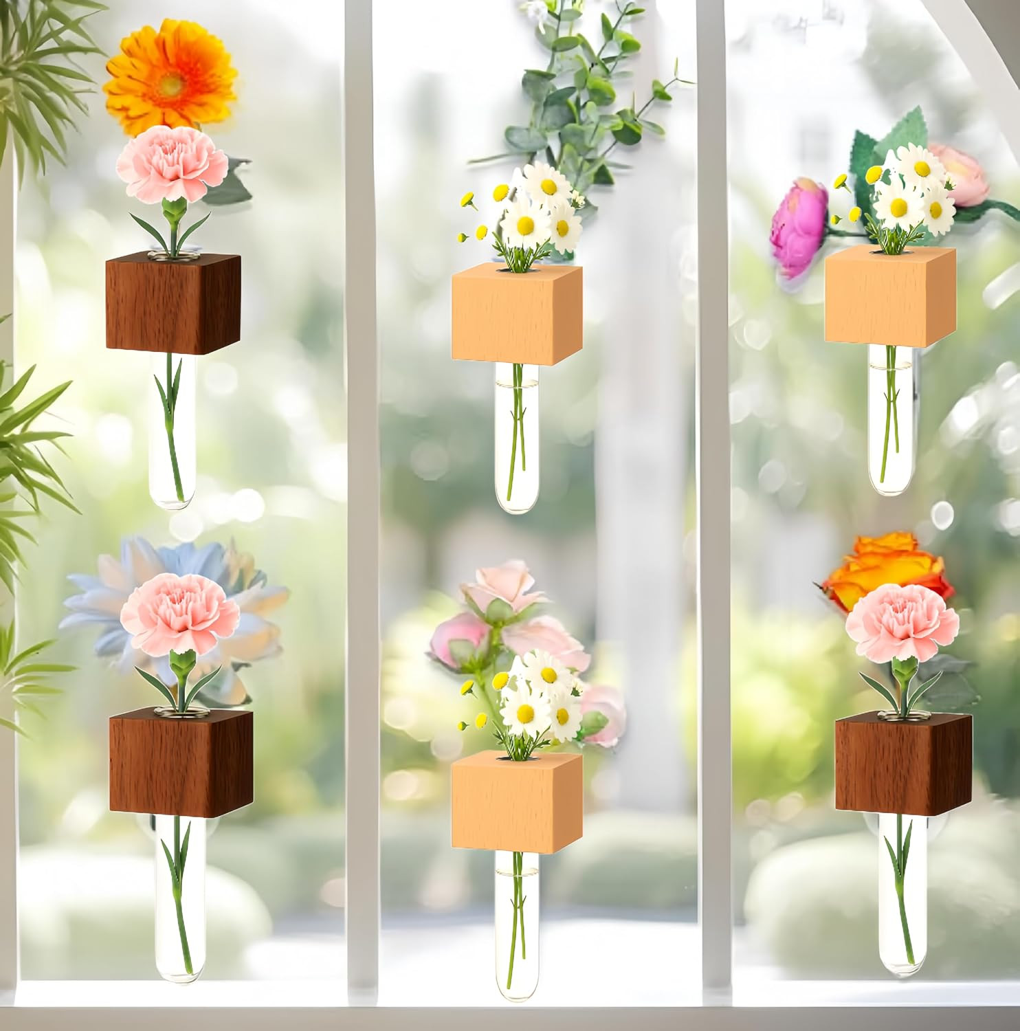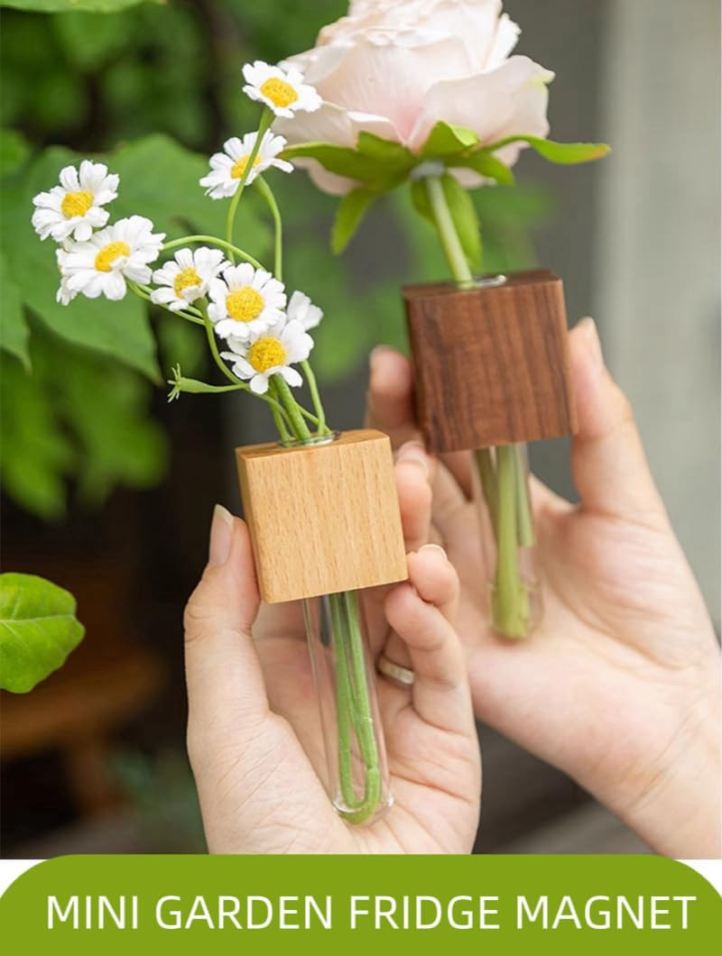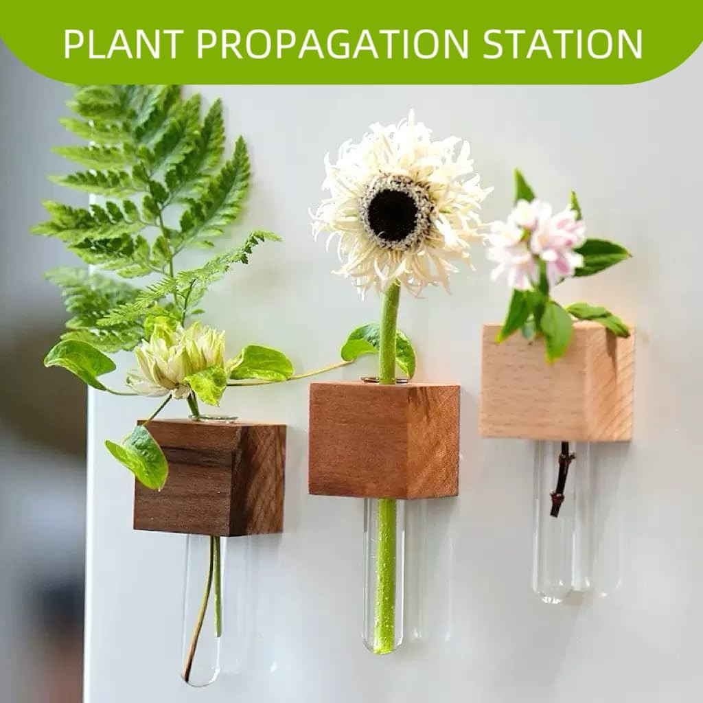 Mini Plant Propagation Station Set - 3 Glass Vases with Wooden Holders