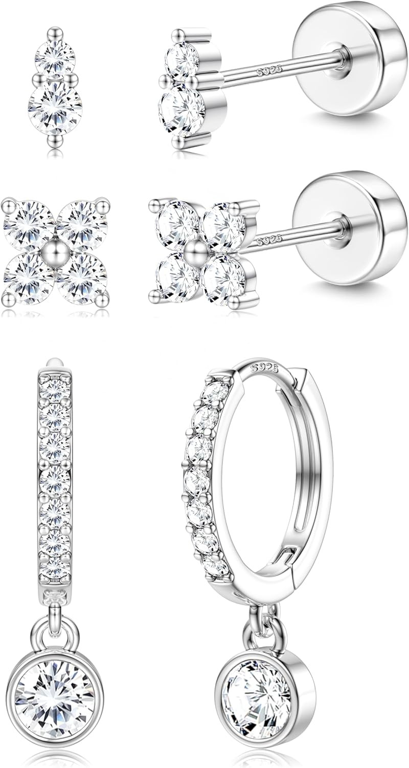 Sterling Silver Small Hoop Huggie Earrings with CZ for Women