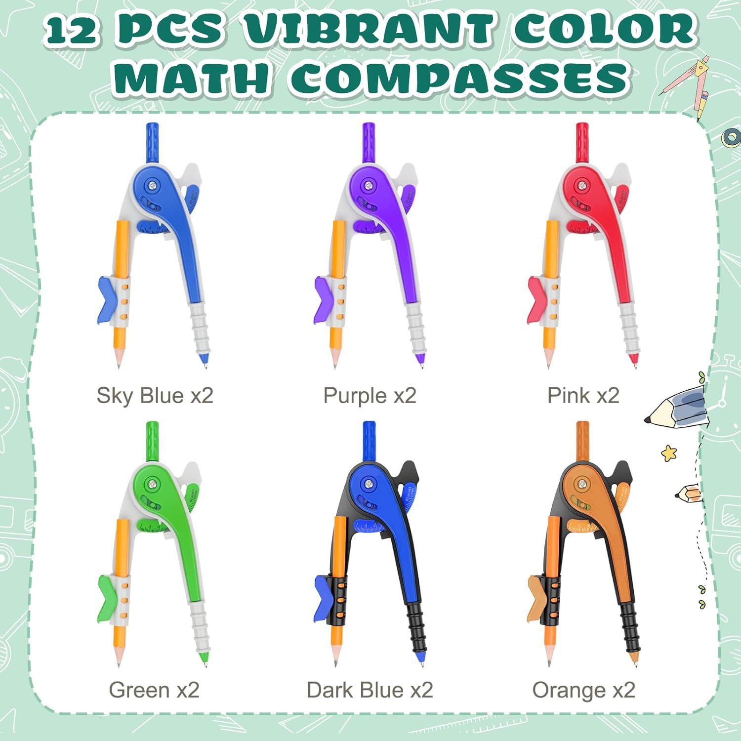 как выглядит 36 Pack Math Compass Protractor Geometry Set with Ruler Pencils for Drawing фото